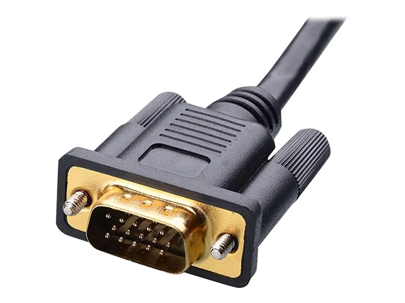 This 3FT HDMI to VGA Active Adapter allows you to connect your HDMI-enabled devices to VGA displays. It features a 3.5mm audio jack for audio output, ideal for connecting laptops to projectors or monitors.