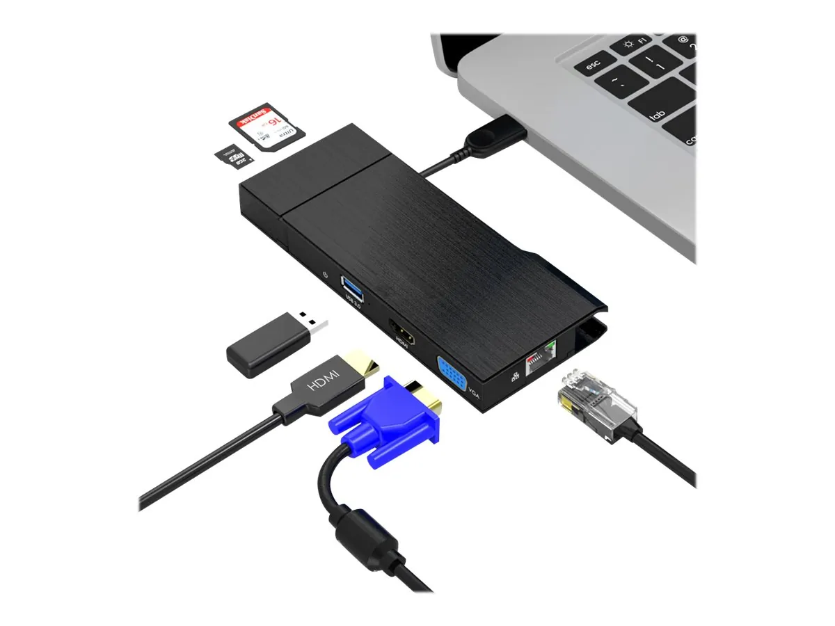 Featuring Full HD output, the docking station supports high-resolution displays, ensuring sharp visuals for presentations or media consumption.