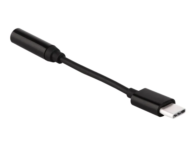 This USB-C to 3.5mm audio adapter allows you to connect your wired headphones to devices that use a USB-C port. The sleek black design is both stylish and functional, making it a perfect accessory for your modern tech devices.