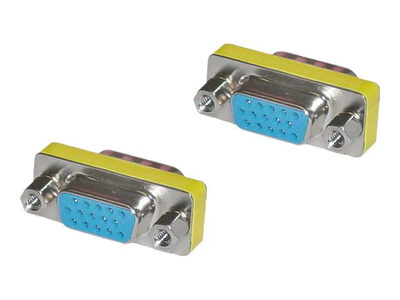 This HD15 VGA female to female coupler adapter allows for seamless connection of two VGA cables.