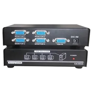 This 4-port VGA video splitter allows you to distribute a single VGA input to multiple monitors with exceptional clarity and performance. With a bandwidth of 350MHz, it supports high resolutions up to 1920x1440, making it perfect for presentations, conferences, and multi-monitor setups.
