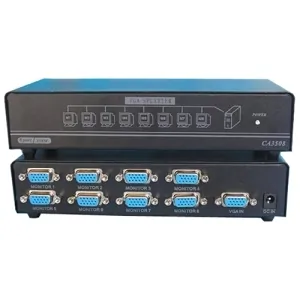 The 8-Port VGA Video Splitter is designed to distribute high-quality video signals to multiple displays without degradation. It supports resolutions up to 1920x1440 at a bandwidth of 350MHz, ensuring crisp and clear images across all connected devices.