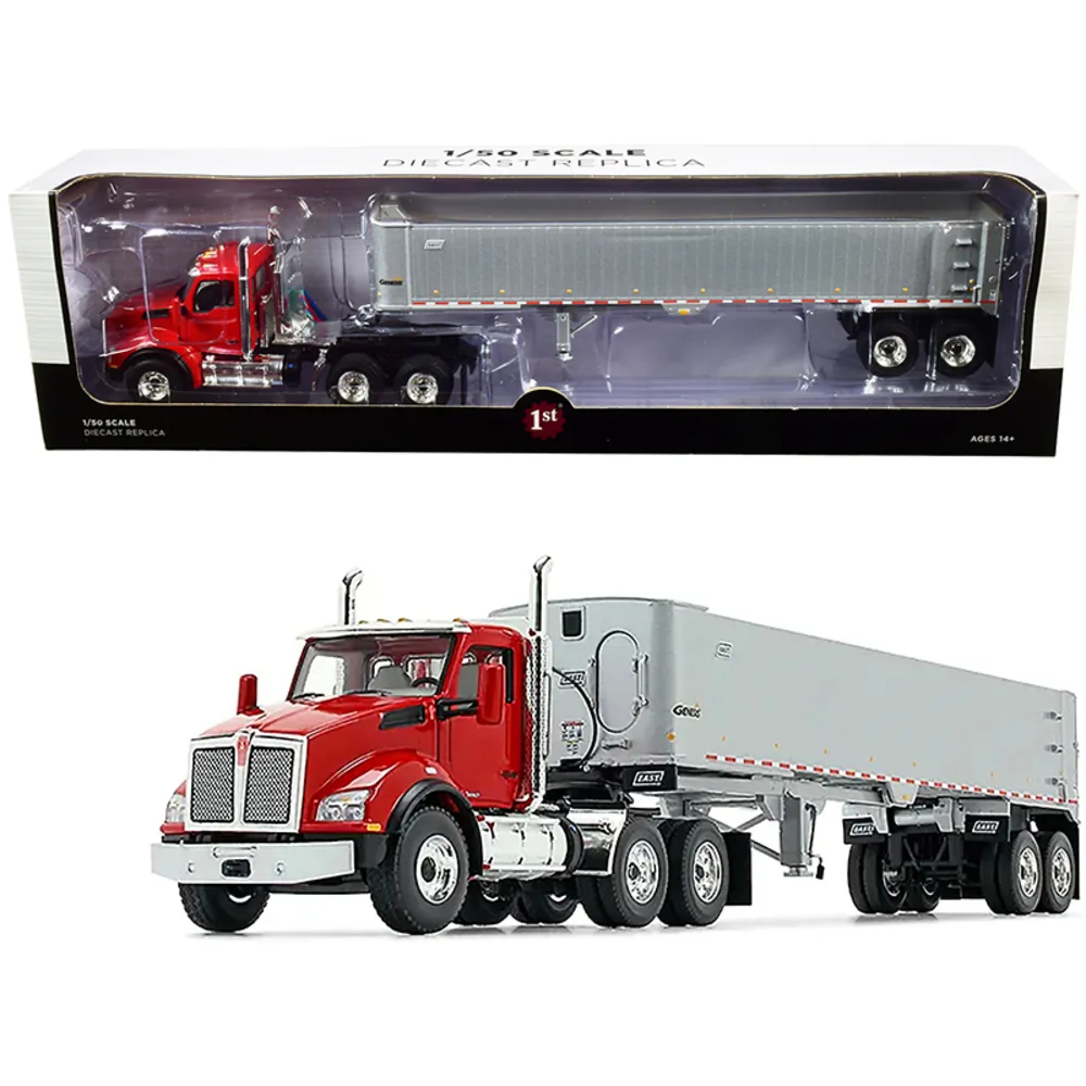 Experience the precision and craftsmanship of the 1/50 scale diecast model of the Kenworth T880 Day Cab paired with the East Genesis End Dump Trailer. This stunning Viper Red and Silver model captures every detail, making it a perfect addition for collectors and enthusiasts alike.
