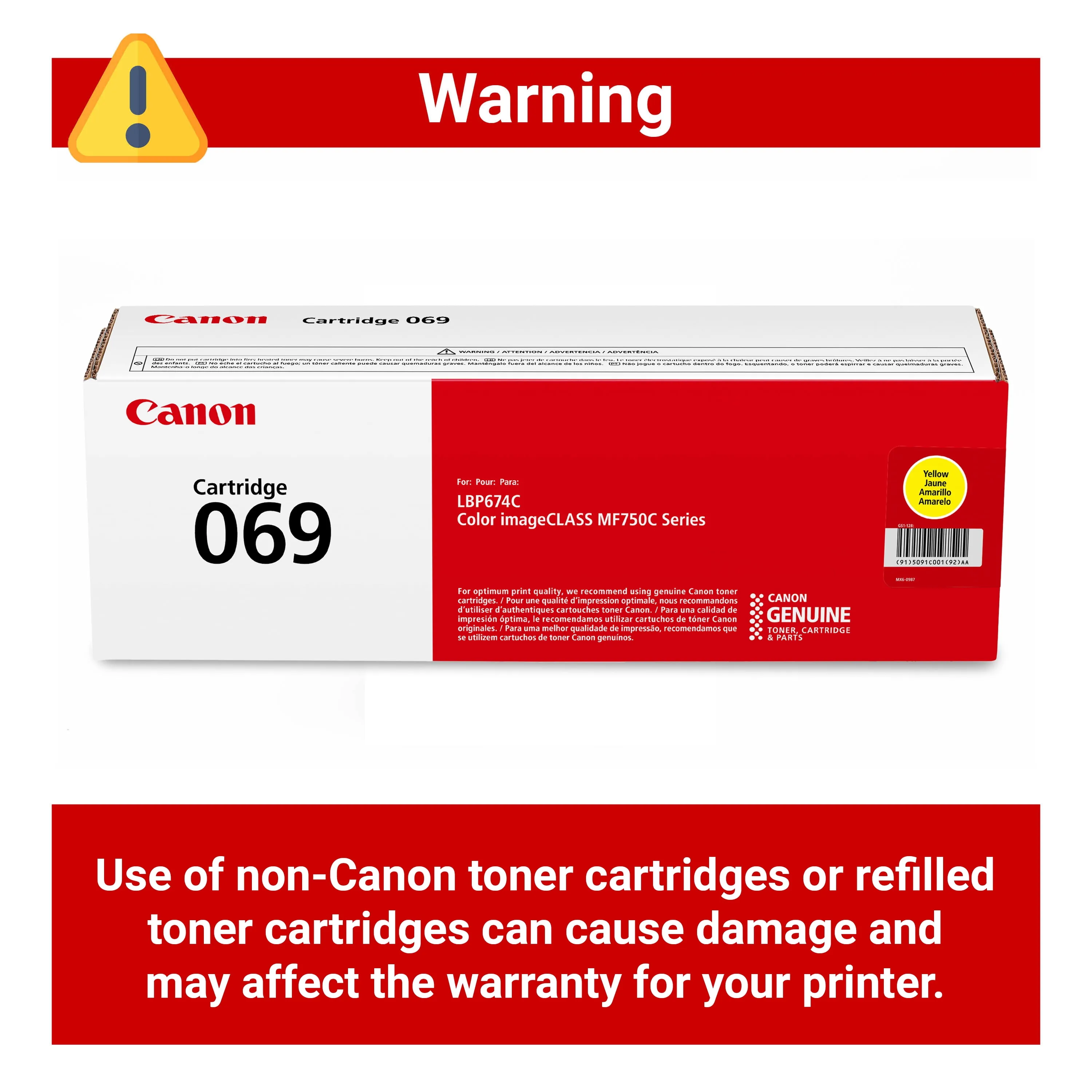 Canon (069) MF753Cdw MF751Cdw LBP674Cdw Yellow Cartridge (1900 Yield)