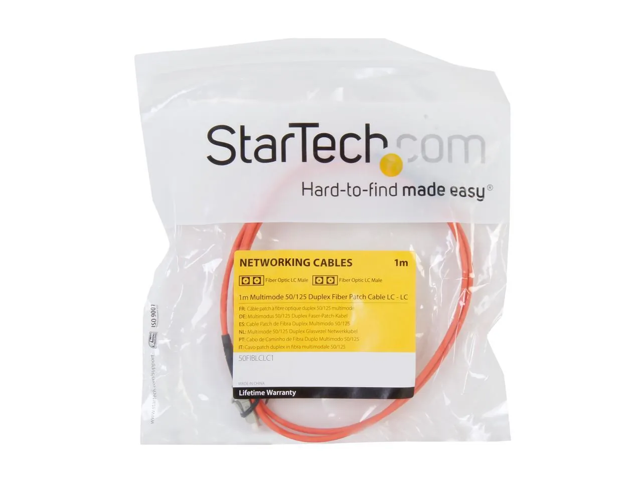 The StarTech.com 3.3 ft. Multimode 50/125 Duplex Fiber Patch Cable (model 50FIBLCLC1) is designed for high-speed data transmission. With its LC to LC connectors, this fiber patch cable is perfect for connecting network devices in a variety of settings.