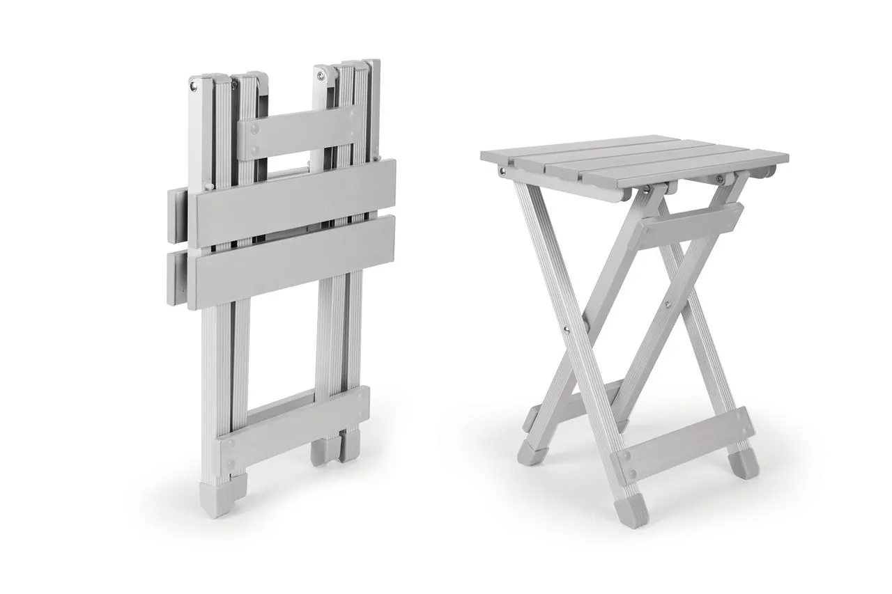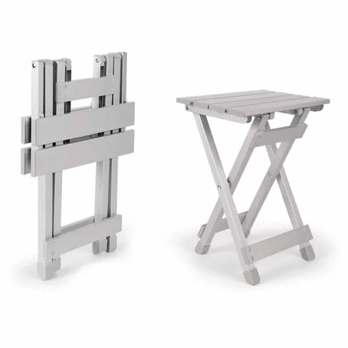 The foldable design ensures it takes minimal space when packed away, while the aluminum material provides durability and resistance to the elements.
