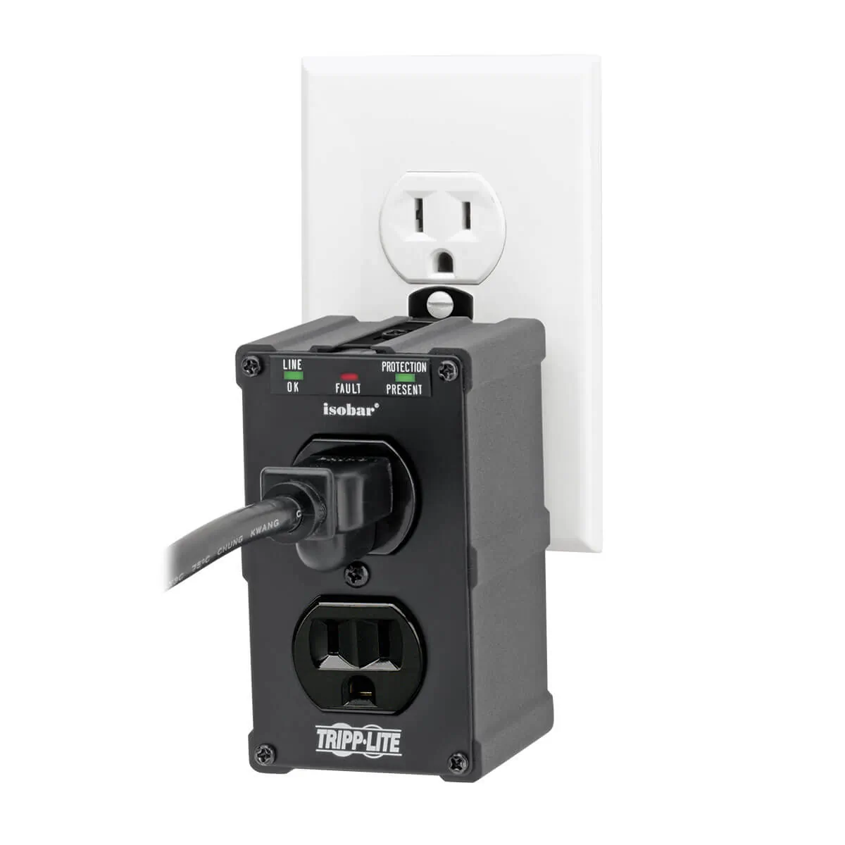 Tripp Lite 2-Outlet Isobar Surge Suppressor:600 joules protection3 LED indicators confirm suppressor operation120V AC, 50/60Hz, 15A electrical compatibilityIsobar triple life surge suppressor has an all-metal housing$10,000 connected equipment insuranceLifetime product warranty2-outlet surge protectorProtects your electrical equipment during a lightning storm or other disasterUse for your stereo, television, gaming consoles and much more