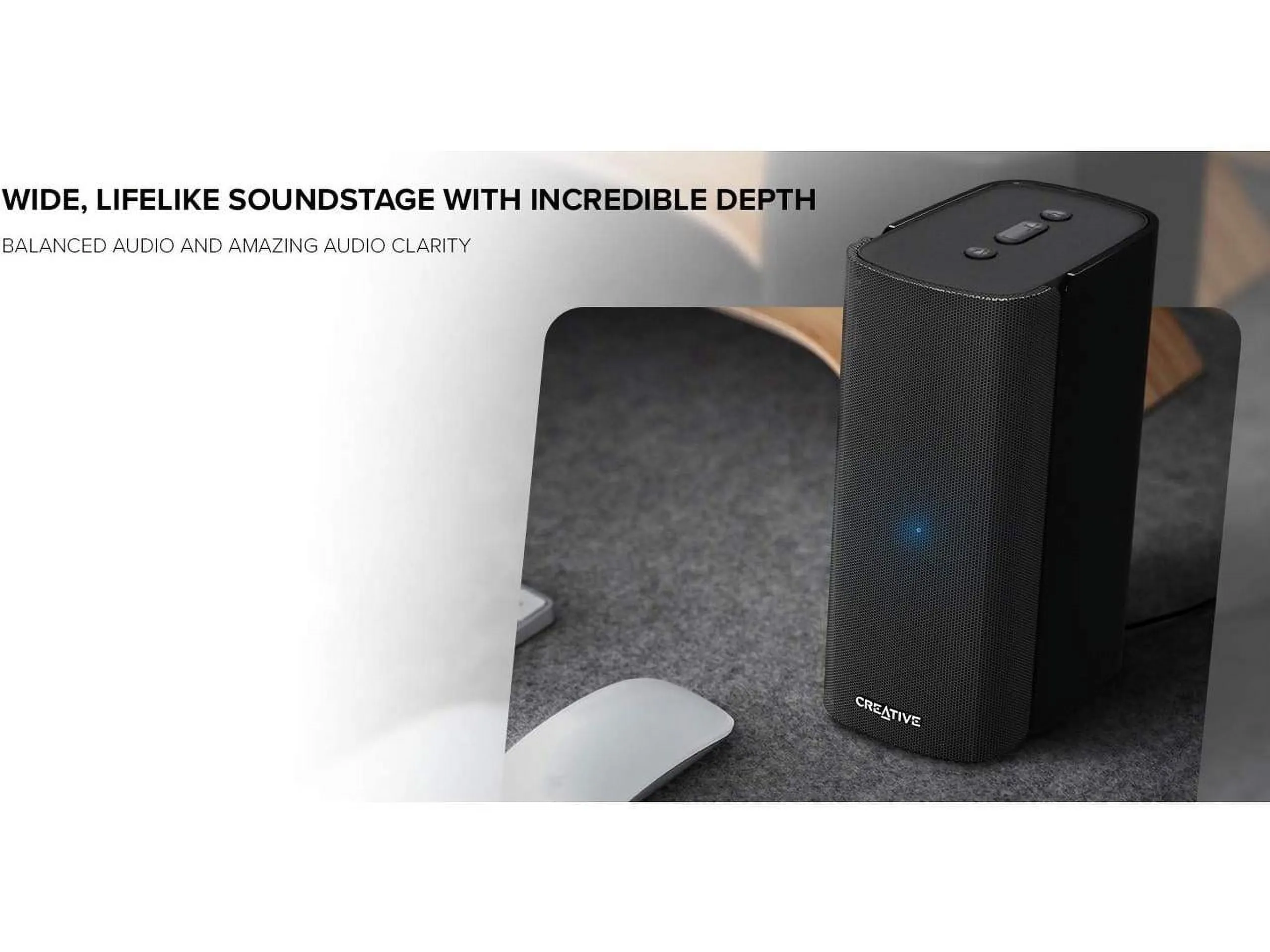 Its compact design makes it perfect for any space, and the black finish adds a modern touch to your home décor. Whether you're streaming from your device or connecting via optical cable, the Creative T100 delivers impressive sound performance.