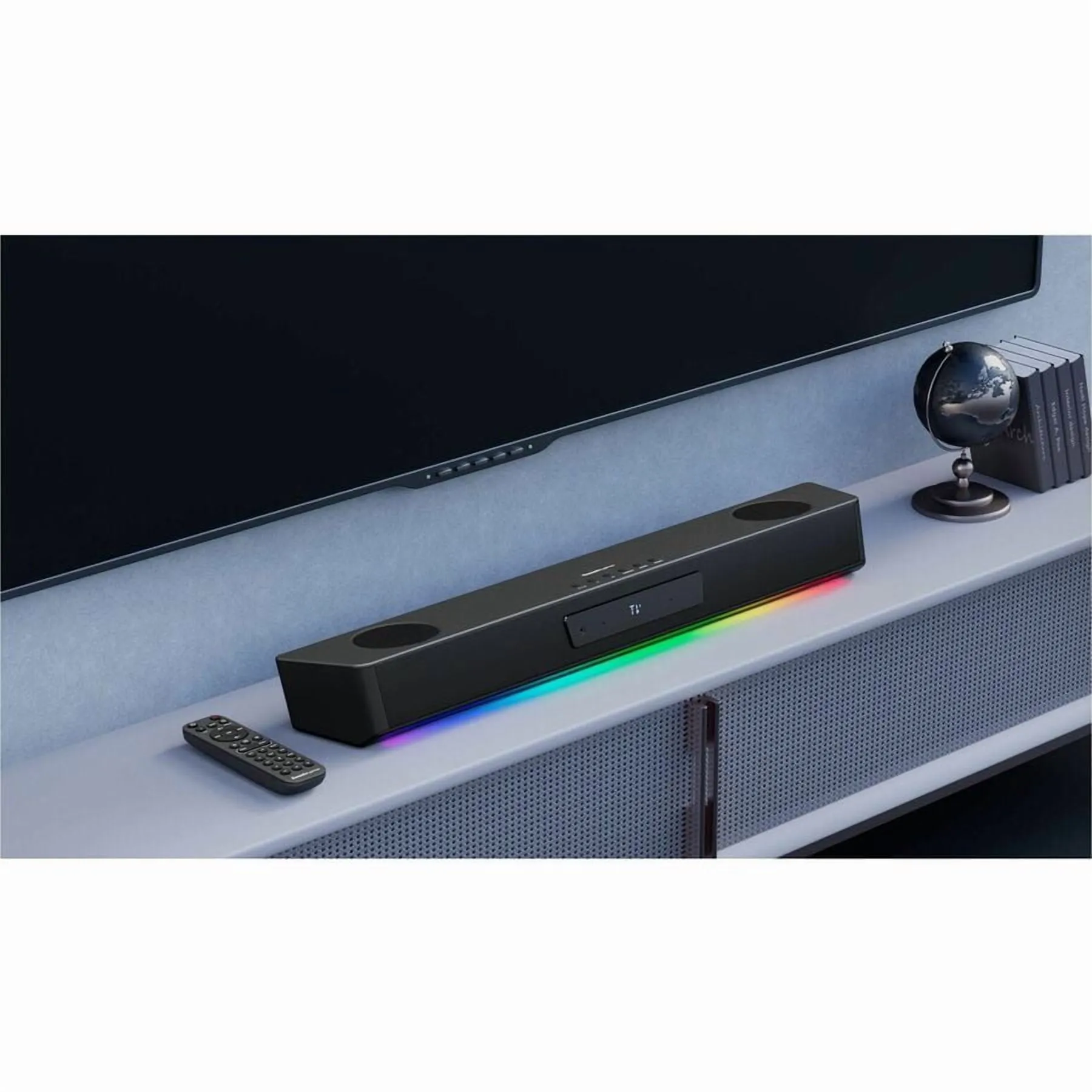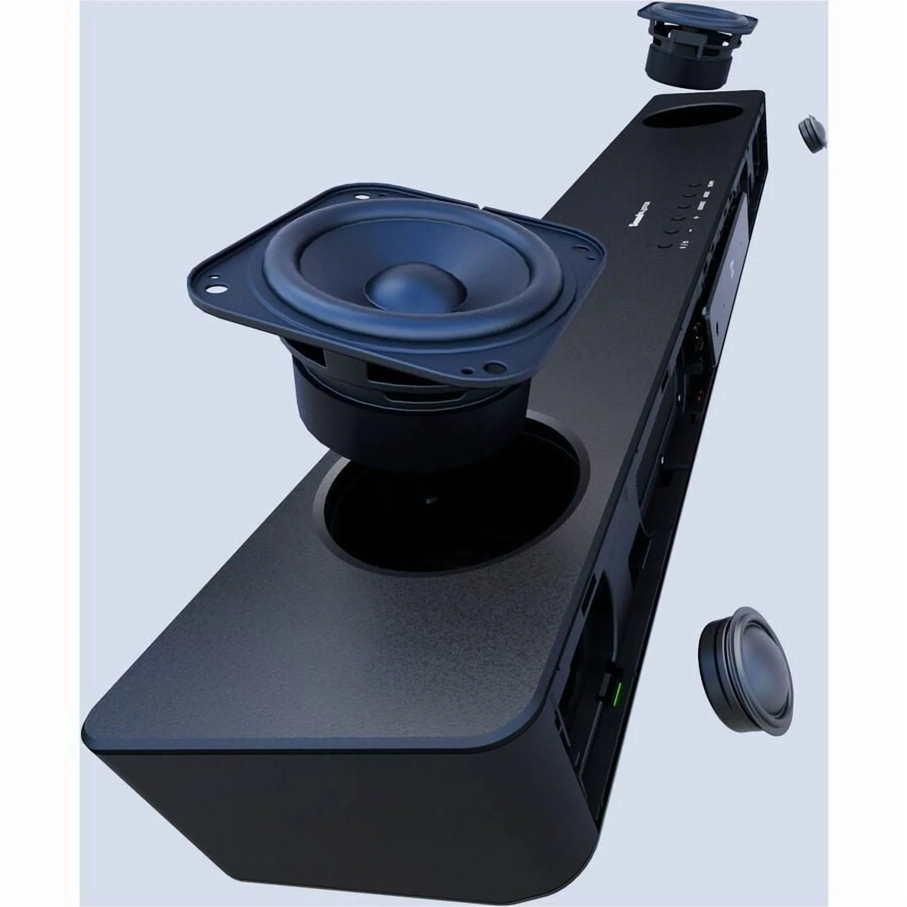 Sound Blaster Katana SE All-in-one soundbar From intense gaming sessions to watching blockbuster movies, or even just relaxing to music, enjoy an immersive experience with the Sound Blaster Katana SE right from the comfort of your own home! A step-up from your built-in desktop or TV speakers, the soundbar offers an immersive spatial audio through our award-winning bi-amplified four-driver design, Super X-Fi technology, and 5.1 virtual surround-engineered for the ultimate movie and gaming experience. The Sound Blaster Katana SE is also very versatile, with a host of ports and connectivity options ranging from USB audio, HDMI ARC, Bluetooth 5.0 for wireless audio streaming, optical-in, SXFI-out, headphone jack, and a 3.5 mm AUX-in for analog audio. The soundbar is also wall-mountable so you can mount it on the wall below your TV as well.