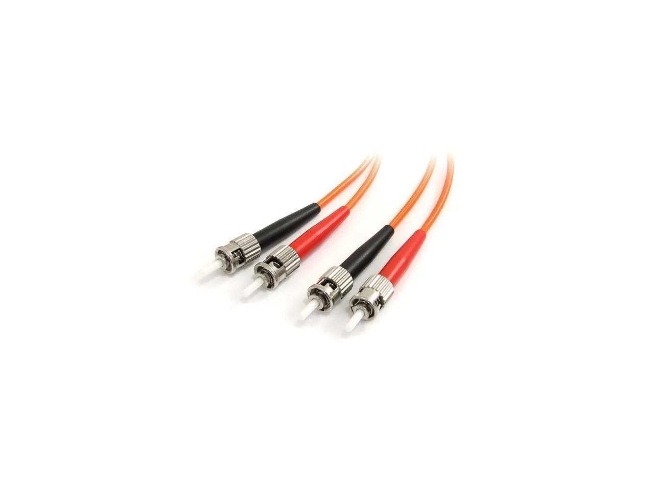 This 1-meter multimode duplex fiber optic cable features ST connectors on both ends and is designed for high-performance data transmission. It is compliant with 62.5/125 micron specifications and is made with LSZH (Low Smoke Zero Halogen) materials to ensure safety in case of fire, making it ideal for indoor installations.