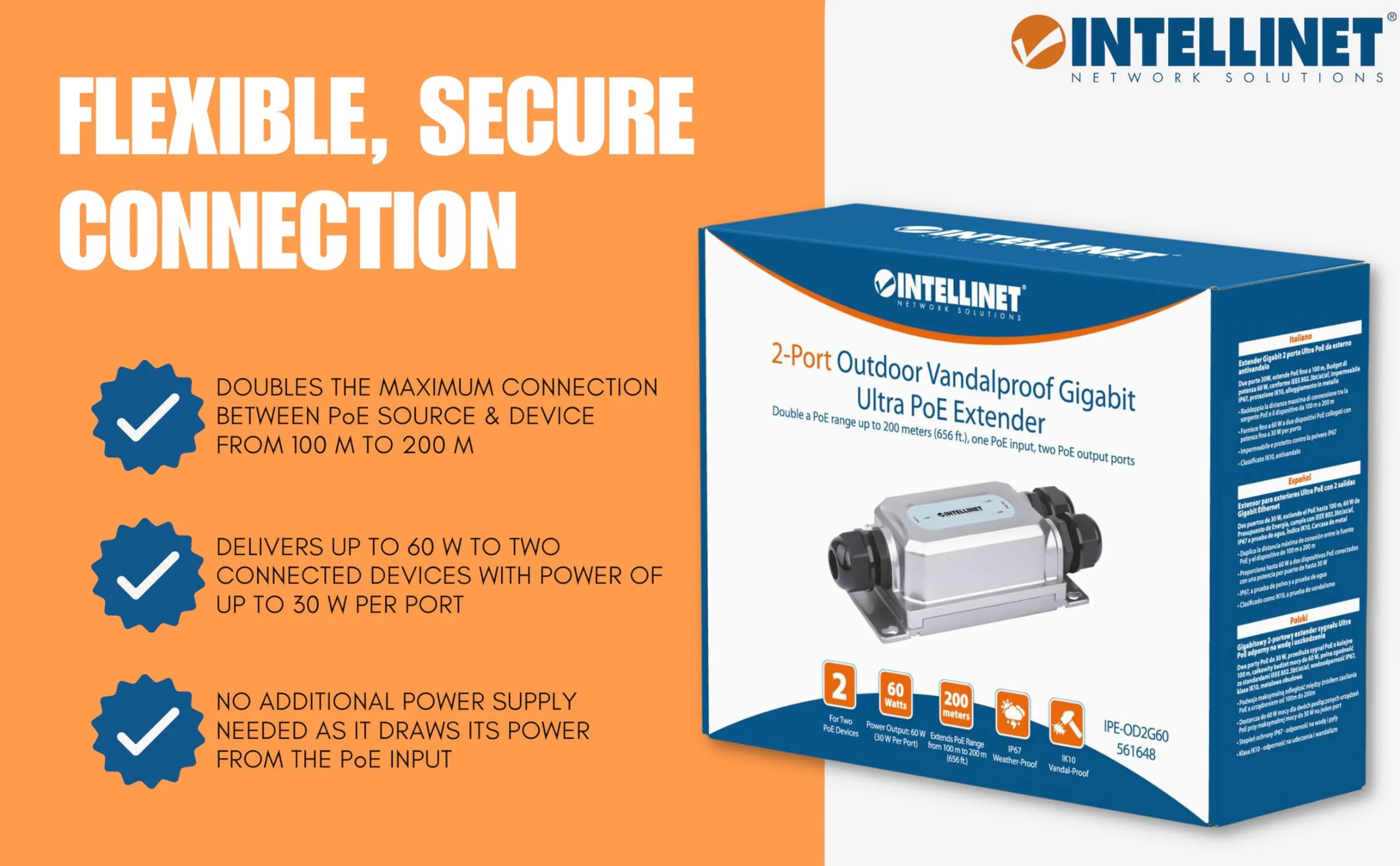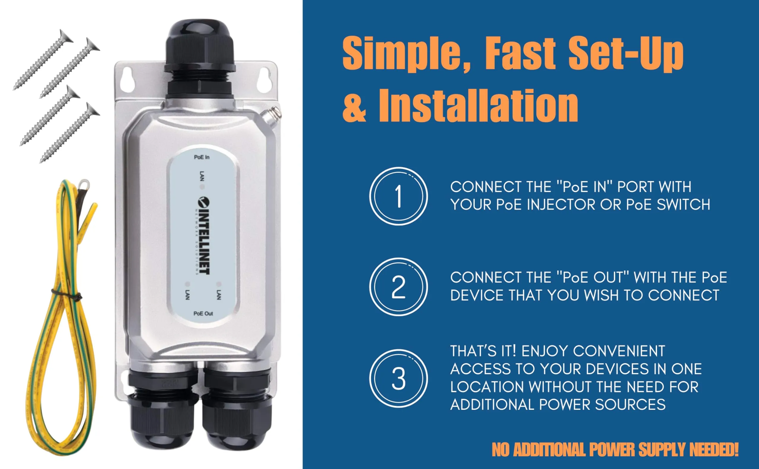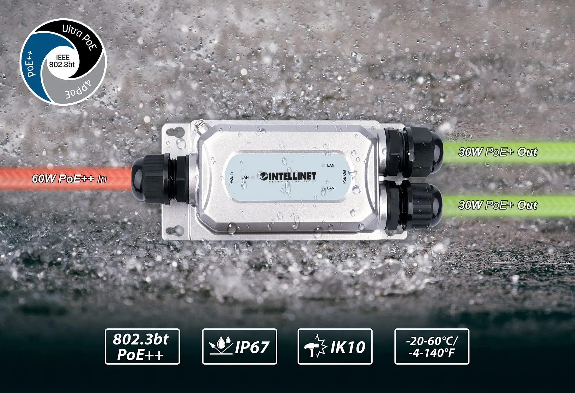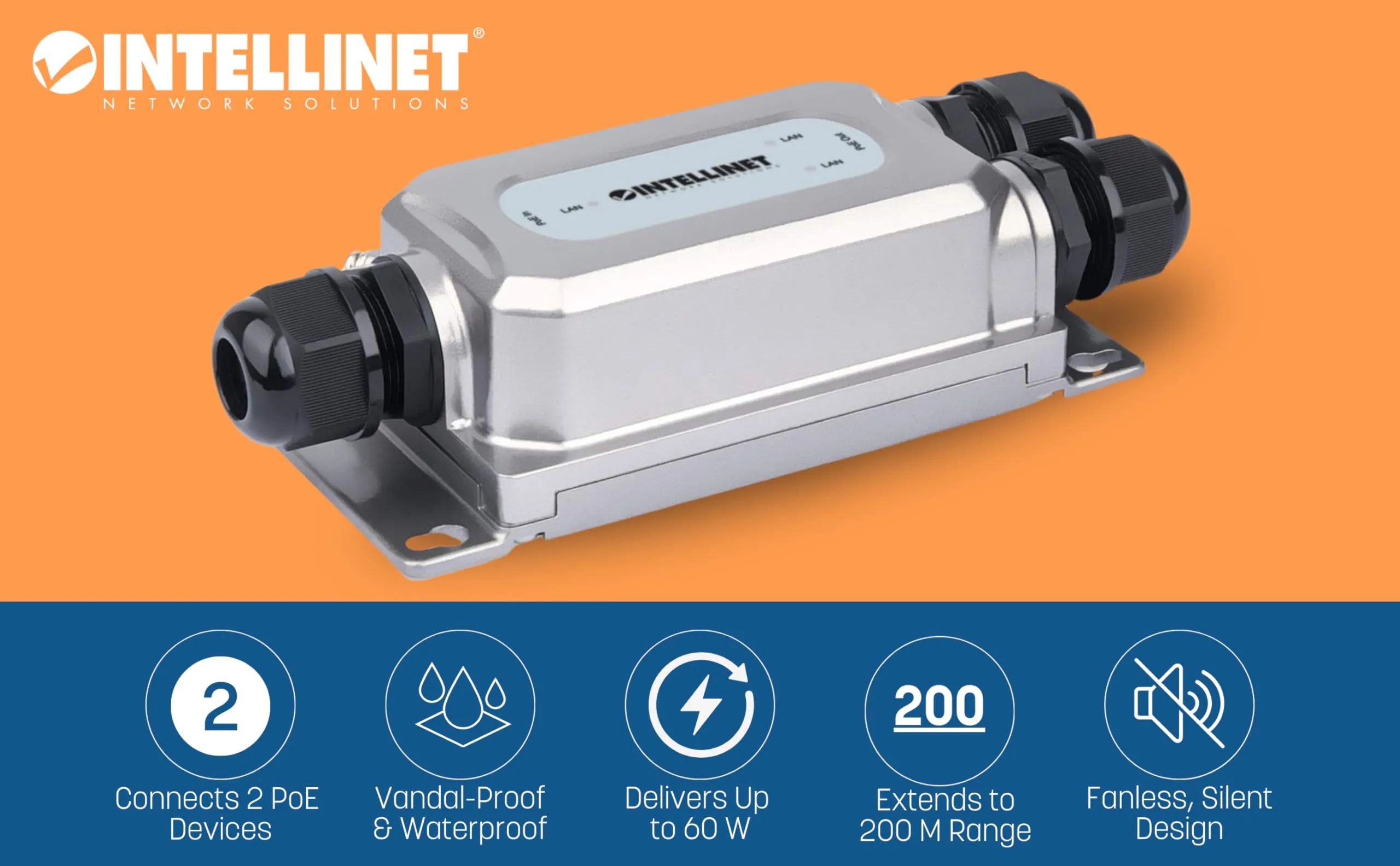 INTELLINET NETWORK SOLUTIONS 2-PORT OUTDOOR VANDALPROOF GIGABIT ULTRA POE EXTEND