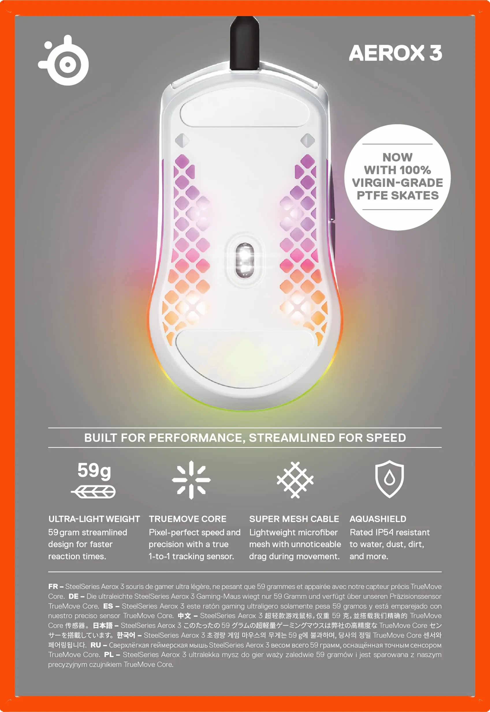 Equipped with a high-precision 8500 DPI sensor, the Aerox 3 Snow ensures accuracy in every movement. The sleek and stylish design not only looks great but also provides comfort during extended gaming sessions.