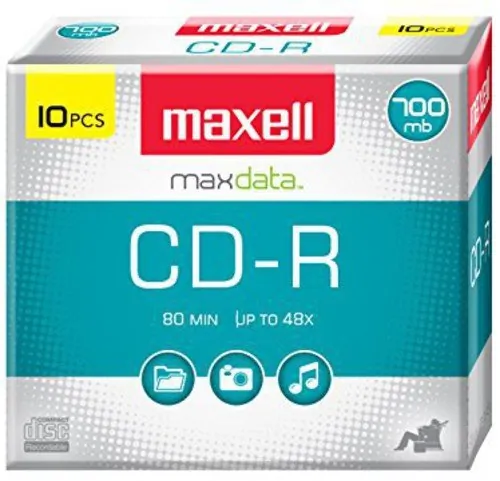 Experience high-quality data storage with Maxell's CD-R discs. Each disc offers a capacity of 700MB and can hold up to 80 minutes of audio, making them perfect for music, data, and backups. These CD-Rs are designed for speeds of up to 48X, ensuring fast and reliable recording. The slim jewel case design saves space and keeps your discs protected.