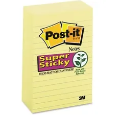 Post-it Super Sticky Notes feature a unique adhesive so your notes will stick securely to more surfaces. Now you can stick your notes where they'll really get noticed - like monitors, doors and walls. With lines to keep your notes straight, 4" x 6" size is perfect for capturing important details or list-making. Super Sticky Notes hold longer and stronger than original notes yet remove cleanly. Familiar and attention-getting, Canary Yellow Notes help get your message across. Super Sticky Post-it Notes are recyclable, and the paper in Post-it Notes is sourced from certified, renewable and responsibly managed forests.