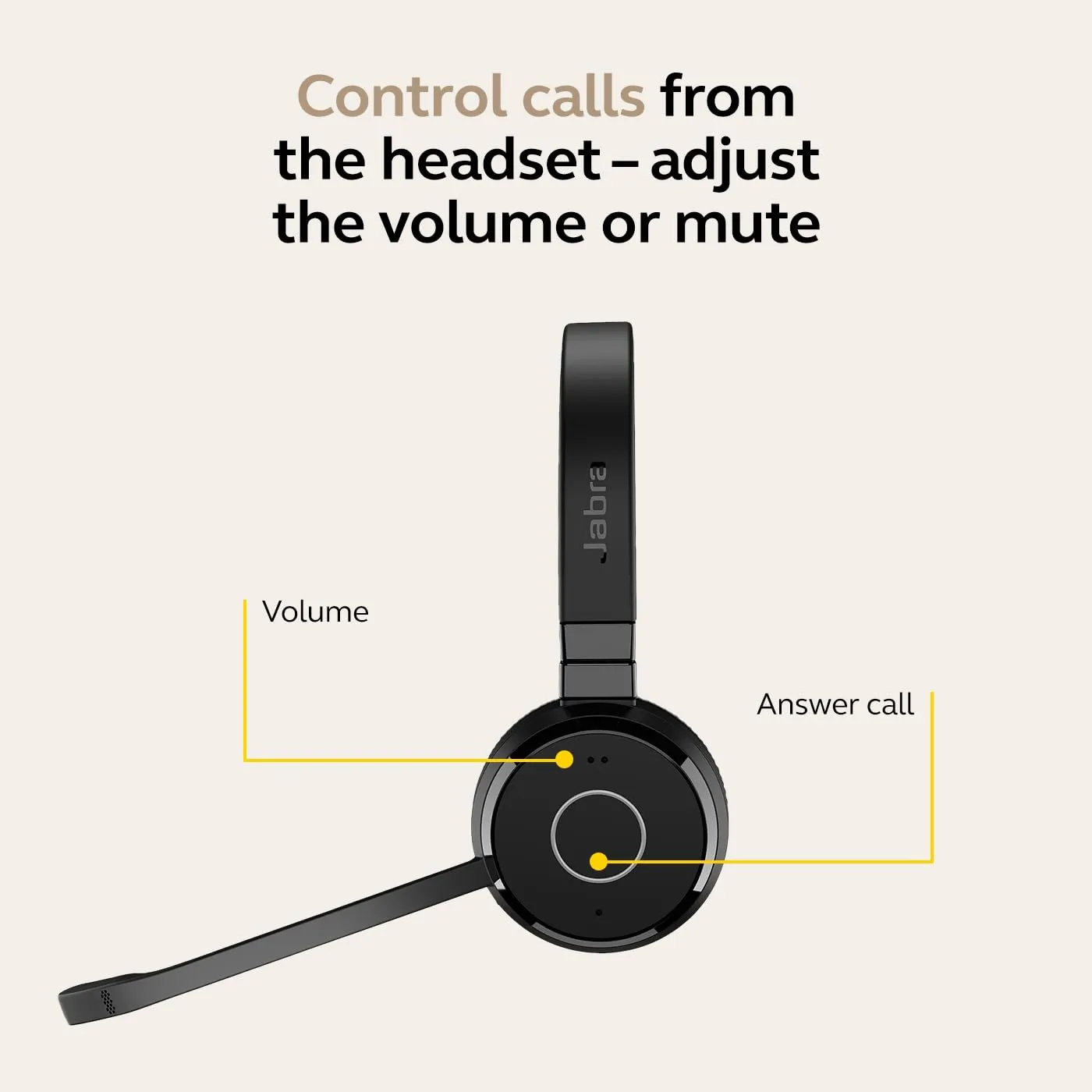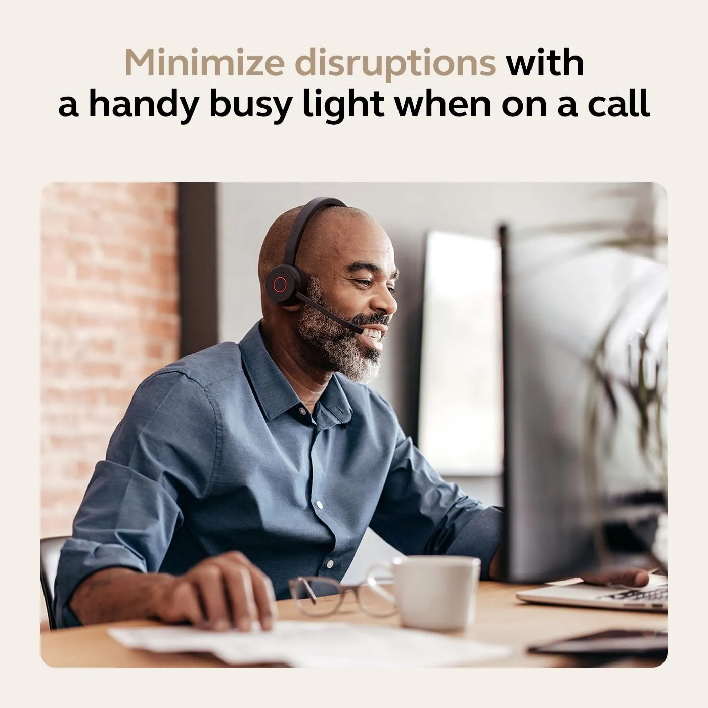 Comfort is key with leather feel ear cushions and an on-ear wearing style designed for extended use. For added convenience, an optional charging stand eliminates battery concerns, ensuring you're always ready for your next call.