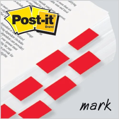 Post-it Flags in an easy-to-spot red color make it simple to mark your place, flag or highlight important information. Use them to draw attention to critical items, index, file or color-code. Eye-catching, colorful flags are easy to spot and have space to write. Removable adhesive allows the attention-getting 1" flags to stick securely, reposition and remove cleanly. The handy detachable cartridges can be used as a stand-alone dispenser or placed in a desktop dispenser/organizer with a built-in Post-it Flags dispenser.