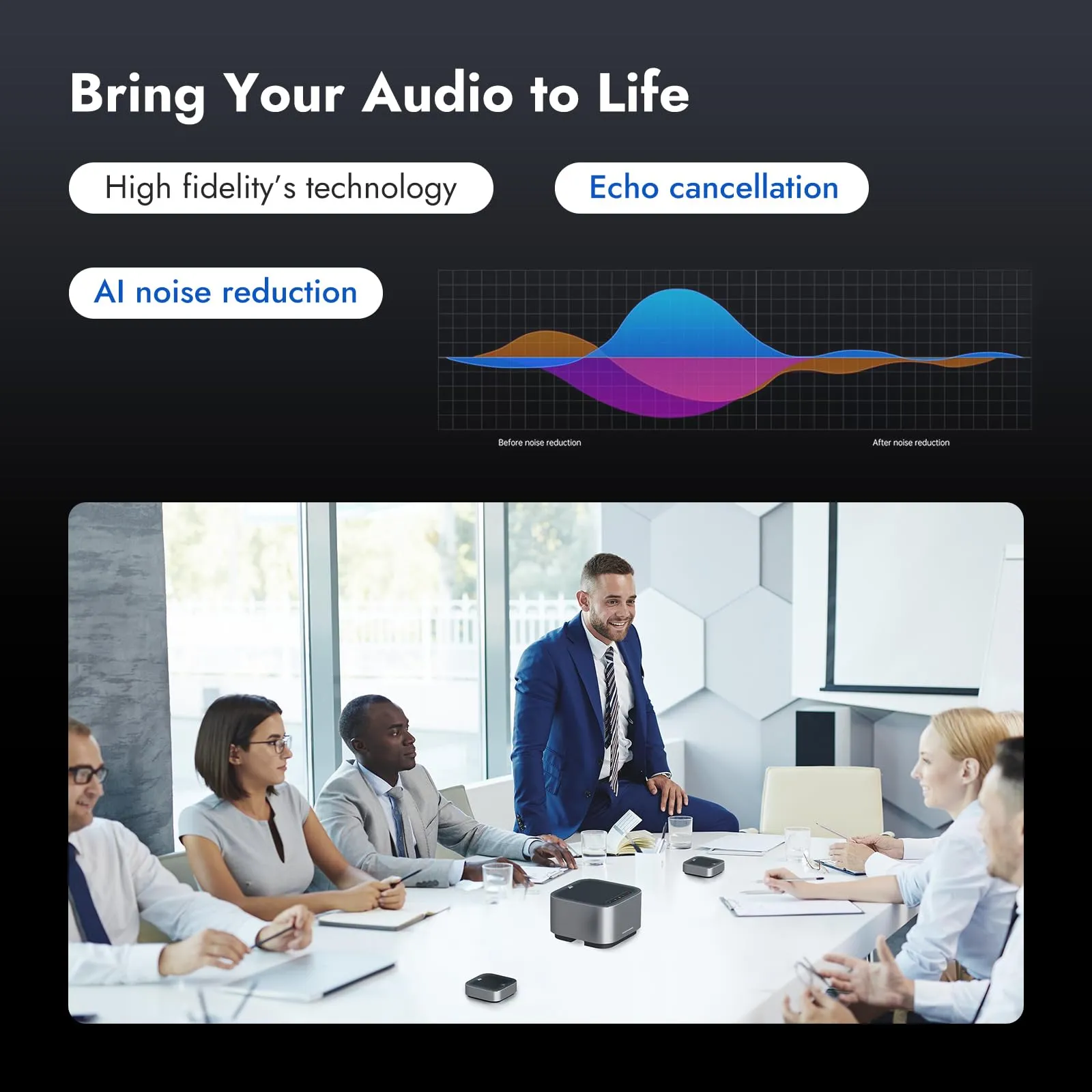 The A10 Smart Conference Speakerphone is engineered for seamless corporate meetings. Leveraging advanced AI audio algorithms, it eliminates echo, background noise, and voice reverberation, providing crystal-clear sound quality for voice calls.