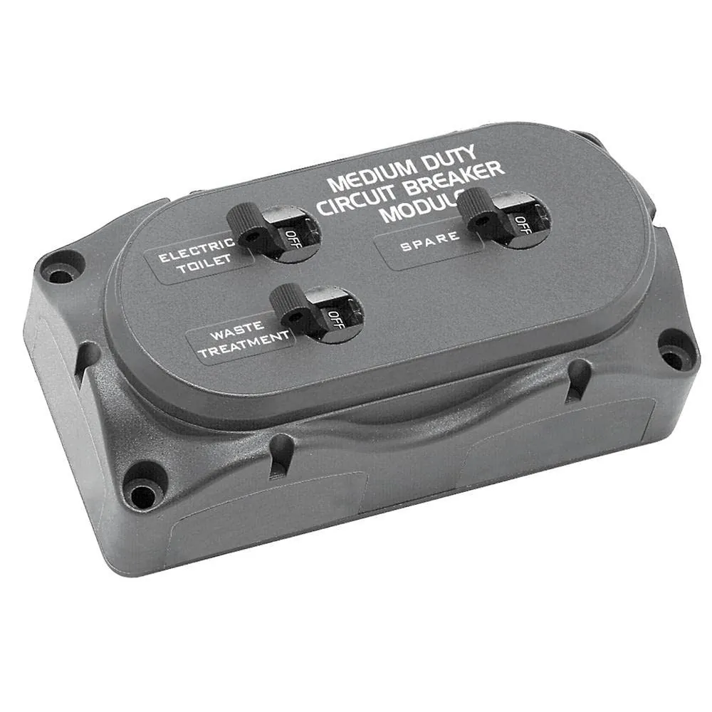 The 707 Circuit Breaker Module is designed for medium duty loads, such as waste treatment systems and electric toilets. This module separates these loadings from the main DC panel to prevent unnecessary voltage spikes. It comes in a Contour lock double module and includes 1 x 50A and 2 x 25A B Series Circuit Breakers. Additional circuit breakers can be purchased separately.