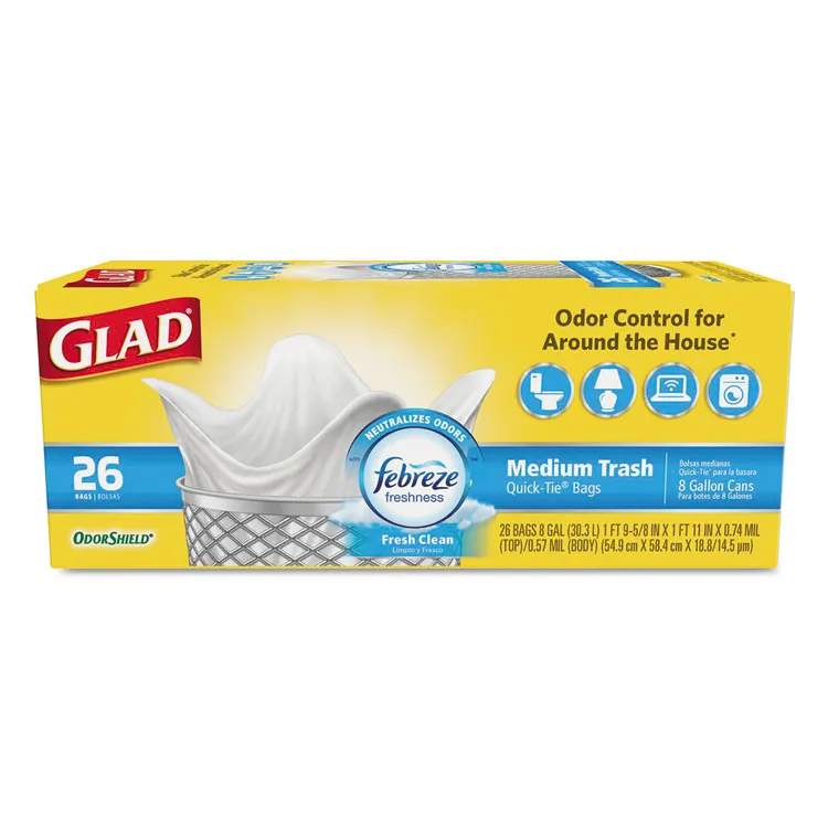 Keep your space fresh and clean with ODORSHIELD Medium Quick-Tie Trash Bags. Designed for everyday use, these 8-gallon bags offer robust strength and odor control.