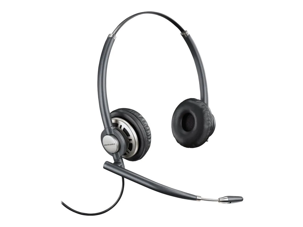 The Plantronics EncorePro Binaural Headset is designed with professionals in mind. Its over-the-head design features noise-canceling technology and an elegant satin finish, combining style with function.