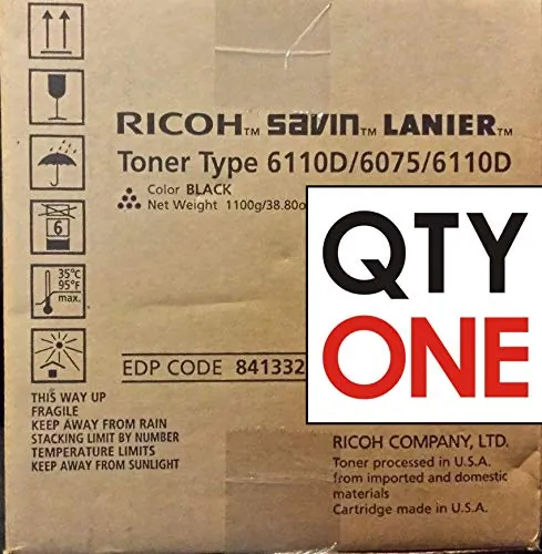 Standard yield black toner cartridge for use with ricoh 6002, 7502, dsm651, dsm651sp, dsm660, dsm660sp, dsm675, dsm675sp, dsm755, dsm755sp, dsm765, dsm765sp, dsm775, dsm775sp, p7575, p7675. This is a OEM MONOCHROMATIC TONER RICOH brand Toner Cartridge (SD BLACK TONER) that works with the following printers / machines (6002, 7502, DSM651, DSM651SP, DSM660, DSM660SP, DSM675, DSM675SP, DSM755, DSM755SP, DSM765, DSM765SP, DSM775, DSM775SP, P7575, P7675). Product Features: Capacity: 1100 g Compatible with: Lanier MP 5500, MP 6000, MP 6500, MP 7000, MP 7500, MP 8000, Gestetner MP 5500, MP 60XX, MP 6500, MP 70XX, MP 75XX, MP 80XX, MP 90XX, Nashuatec MP 60XX, MP 70XX, Rex Rotary MP 5500, MP 60XX, MP 6500, MP 70XX, MP 75XX, MP 80XX, MP 90XX, Ricoh MP 60XX, MP 65XX, MP 70XX, MP 75XX, MP 80XX, MP 90XX Duty Cycle: Up to 43000 pages at 6% coverage Included Qty: 4-pack Printing Color: Black Printing Technology: Laser Product Description: Ricoh Type 6110D - 4-pack - black - original - toner cartridge Product Type: Toner cartridge. STANDARD YIELD BLACK TONER. 6002, 7502, DSM651, DSM651SP, DSM660, DSM660SP, DSM675, DSM675SP, DSM755, DSM755SP, DSM765, DSM765SP, DSM775, DSM775SP, P7575, P7675. OEM RICOH Brand.