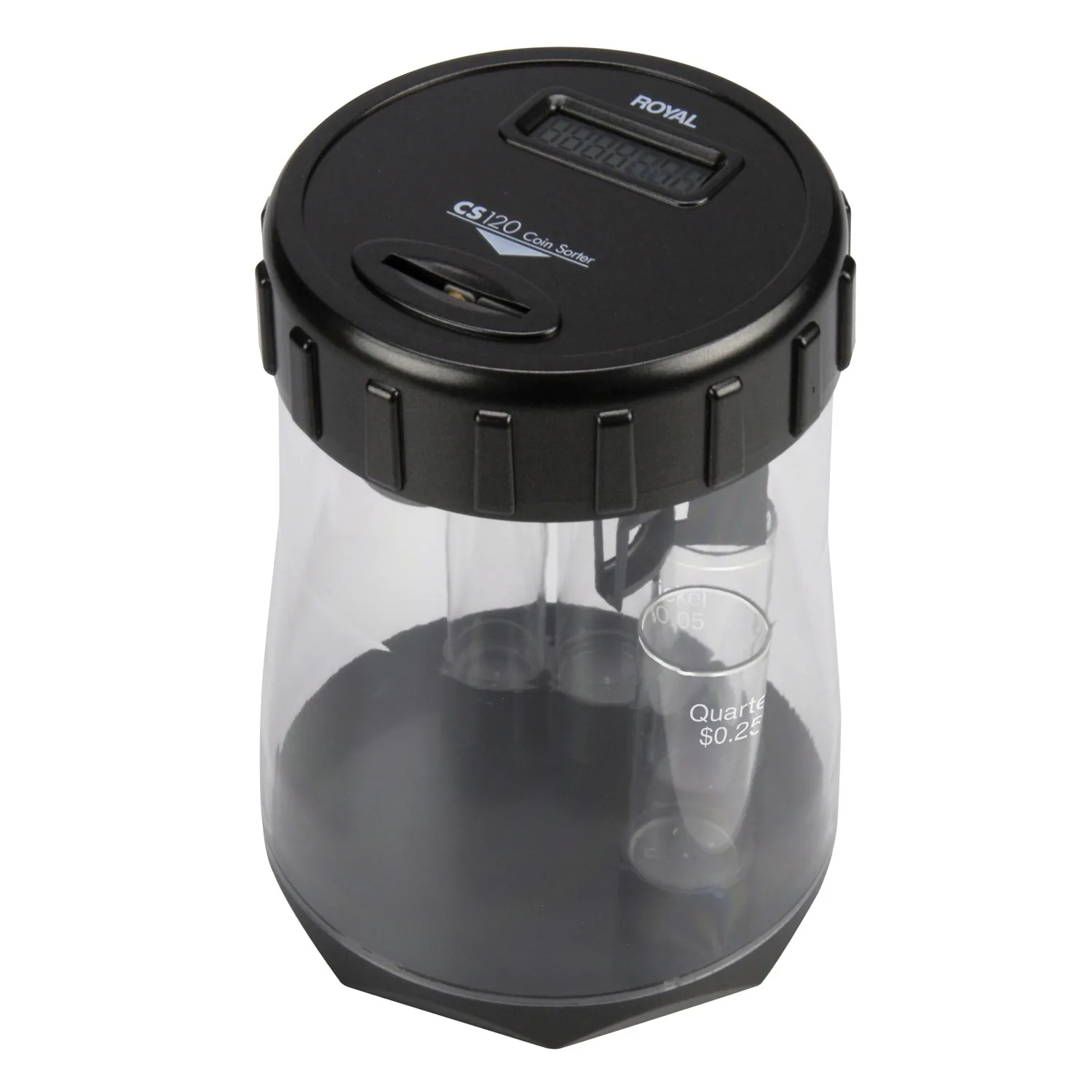The Royal Black CS120 Coin Sorter and Counter makes counting and sorting your spare change a breeze! With its efficient technology, you can quickly separate coins into designated tubes and wrap them in paper coin wrappers with ease. Designed for organizers and savers, this sorter keeps an accurate total of your inserted coins, so you always know how much you've saved.