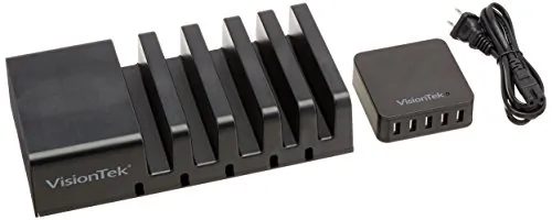 The VisionTek Multi-Device Charging Station is designed to provide a convenient and efficient charging solution for up to 5 devices simultaneously. Its compact design makes it perfect for home or office use, ensuring all your devices are charged and ready to go.