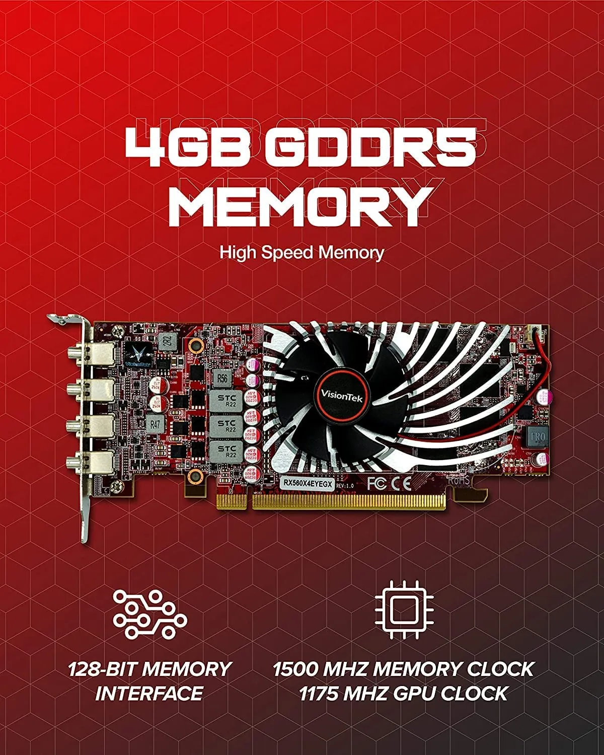 Experience stunning performance and efficiency with the AMD Radeon RX 550 Low Profile Graphics Card. Equipped with 4GB of GDDR5 memory, this graphics card is perfect for gamers and creative professionals looking to enhance their visual experience. Featuring four Mini DisplayPort outputs, it allows for multiple screens and immersive gaming setups.