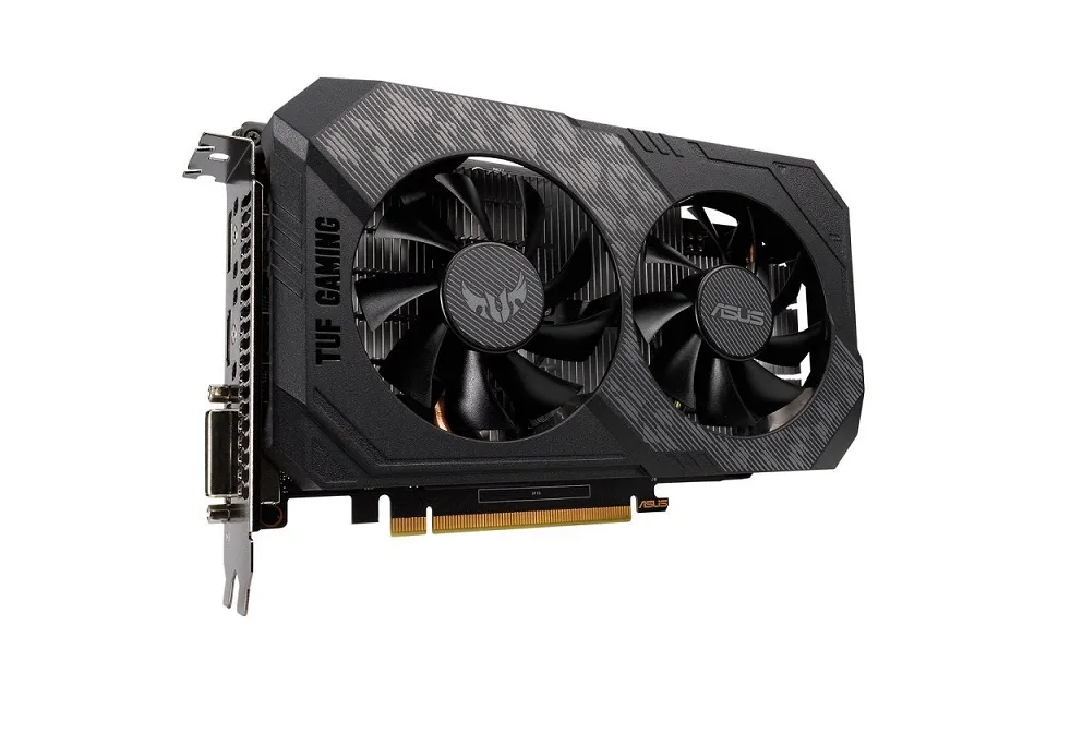 ASUSTUF-GTX1650-O4GD6-P-GAMING Graphics Card. ASUS TUF Gaming NVIDIA GeForce GTX 1650 OC Edition Graphics Card (PCIe 3.0, 4GB GDDR6 memory, HDMI, DisplayPort, DVI-D, 1x 6-pin power connector, IP5X Dust Resistance, Space-grade Lubricant). The TUF Gaming GeForce GTX 1650 stacks an arsenal of weapons that bring reliable 3D horsepower to the TUF Gaming ecosystem. Each card is built using Auto-Extreme manufacturing, protected by a rigid backplate that prevents PCB flex, and features fans with space-grade lubricant that are sealed to IP5X standards. The ASUS TUF Gaming GeForce GTX 1650 is built with the breakthrough graphics performance of the award-winning NVIDIA Turing architecture to supercharge your favorite games. Ultra-fast GDDR6 with over 50 percent more memory bandwidth for high-speed gaming. Auto Extreme Manufacturing uses automation to enhance reliability. TUF compatibility testing ensures TUF Gaming and TUF Gaming alliance components work together flawlessly. Protective backplate secures components during transportation and installation.