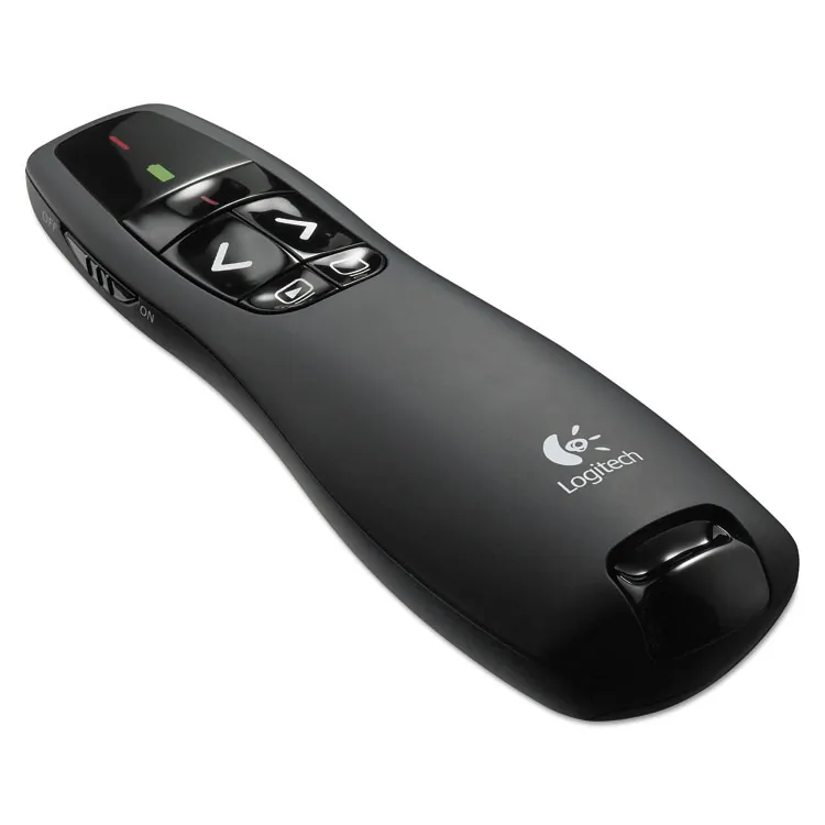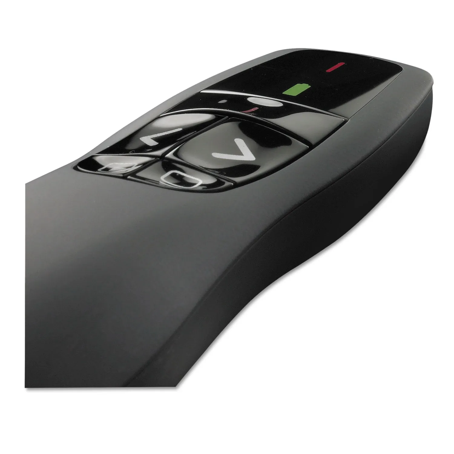 Use the highly efficient controls of this wireless presenter to help you make your point and boost your confidence during your next presentation. 2.4 GHz wireless connectivity lets you move freely up to 50' away from the receiver to provide the freedom to move around the room and mingle with your audience for greater impact. Intuitive slideshow controls are easy to find by touch for a smooth, simple way to navigate through each slide. Bright-red laser pointer makes it easy for your audience to see exactly what you're pointing to. Battery indicator allows you to quickly see how much power is available with just a glance. And with plug-and-play technology, simply plug in the receiver into a USB port to begin. When the show is over, just place the receiver back in the presenter, and you're ready to go.