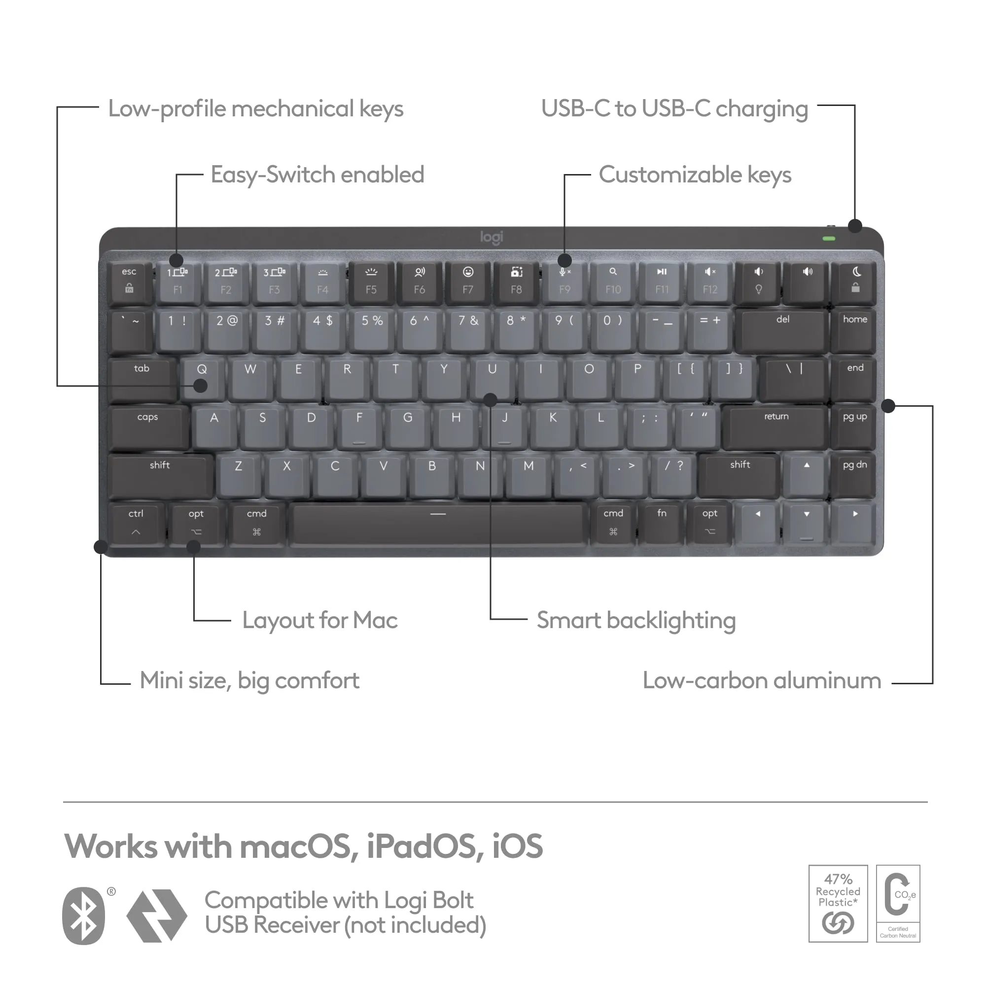 Logitech MX Mechanical Mini for Mac Minimalist Wireless Illuminated Keyboard (Space Grey)