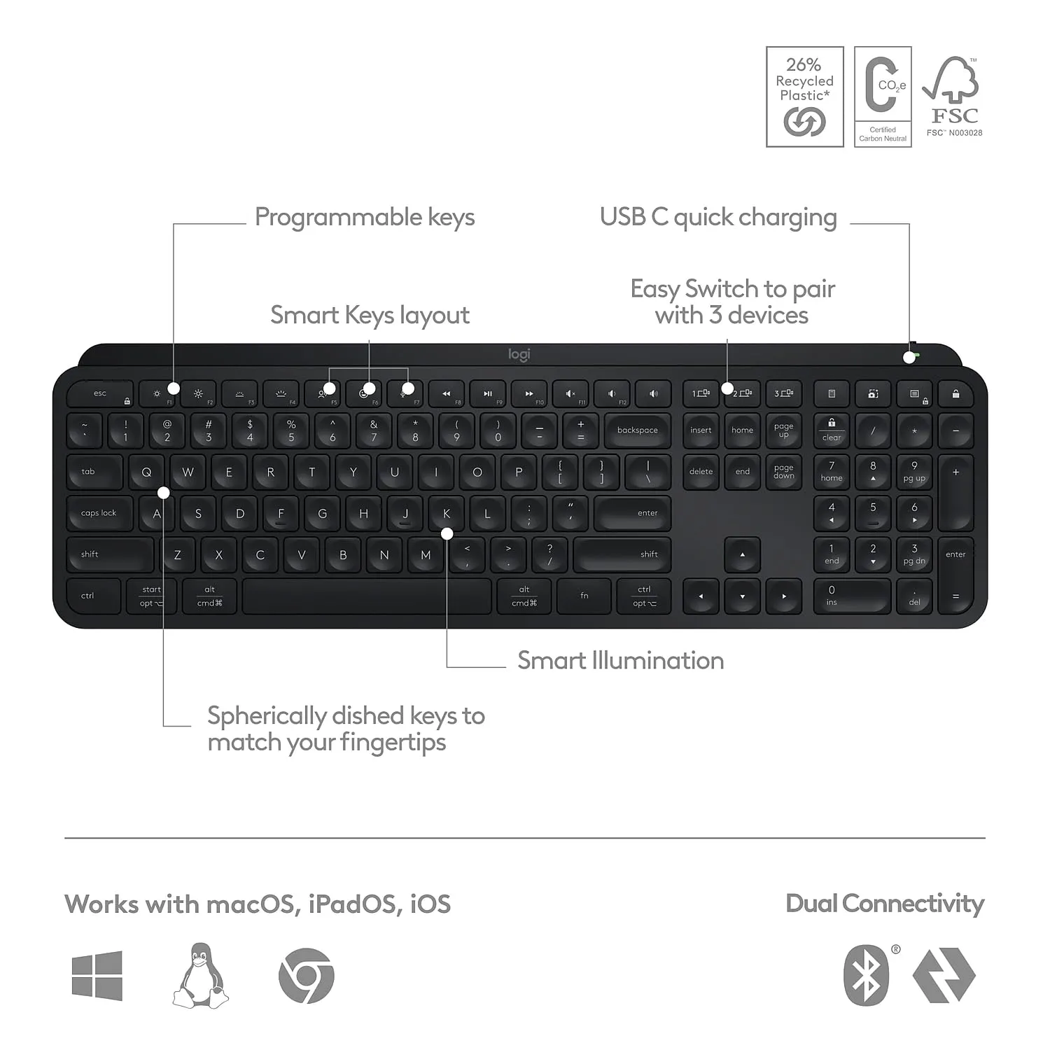 Experience precise typing with the Logitech MX Keys S Wireless Keyboard. This low-profile keyboard features advanced backlighting, adaptive keys, and a sleek design that enhances your workspace.