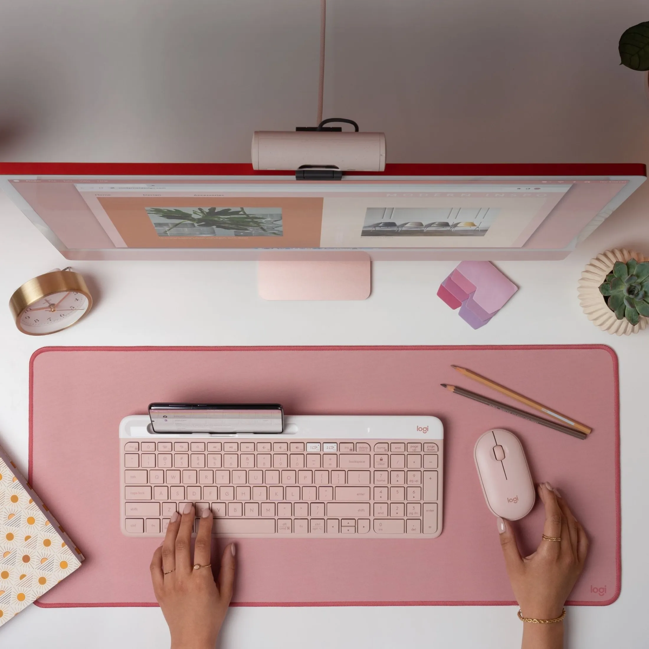 The low-profile keys provide a comfortable typing experience, while the compact design saves desk space. Perfect for multitaskers and those who appreciate a stylish setup.