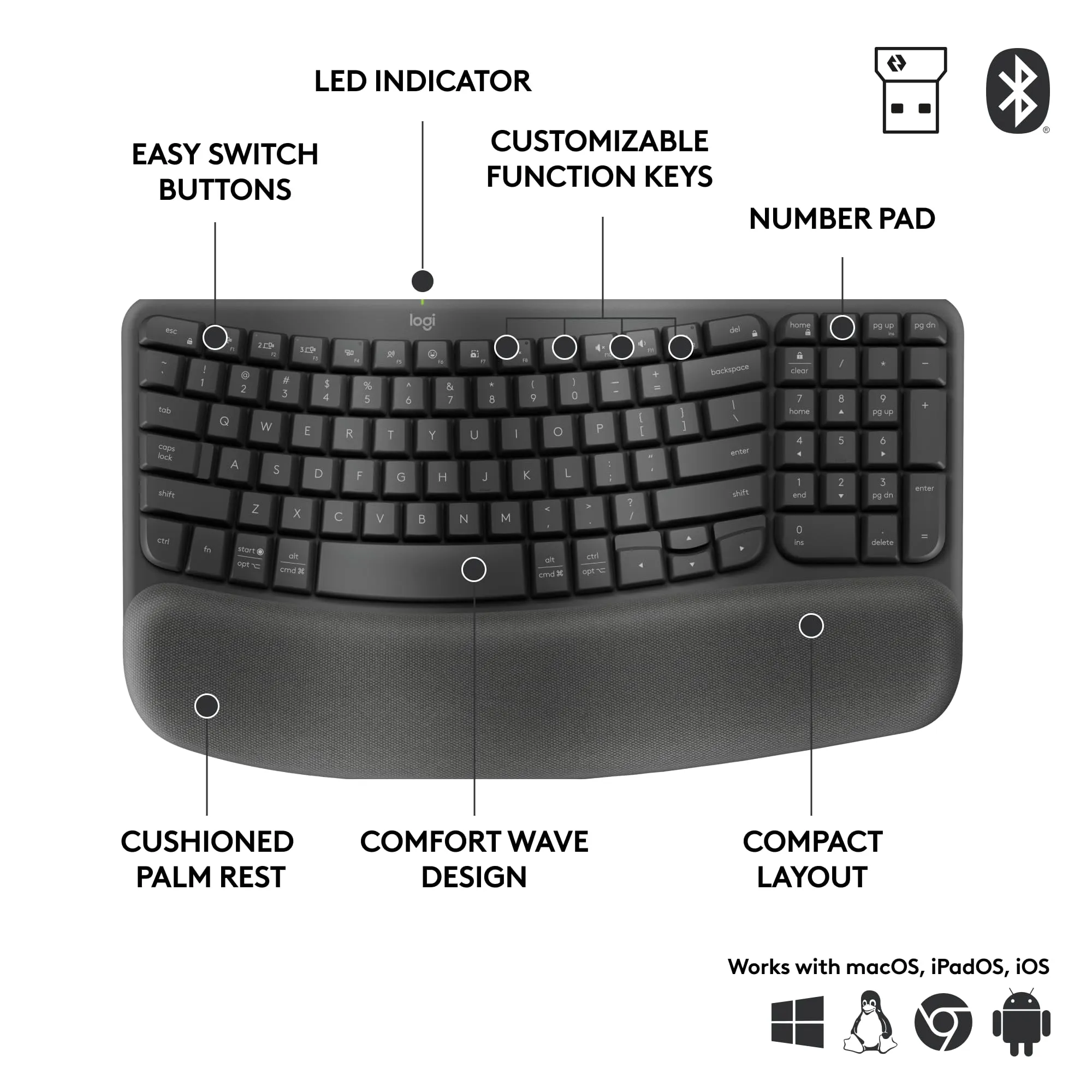 • Ergonomic wave design for comfortable typing