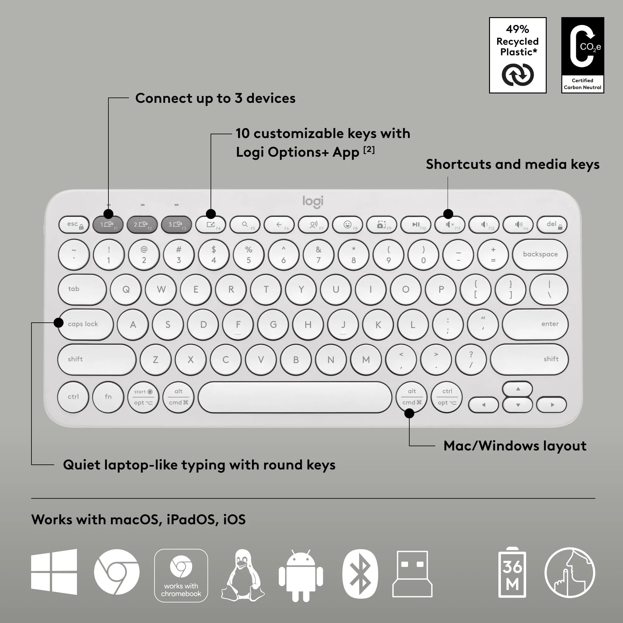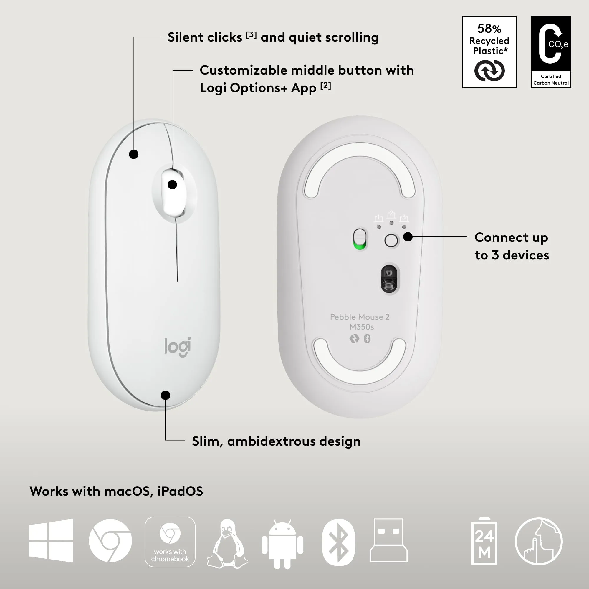 The Logitech Pebble 2 Wireless Combo in white is the perfect blend of style and functionality. This sleek and modern set includes a wireless keyboard and mouse, designed to enhance your workspace with a clean aesthetic. The low-profile keys offer comfortable typing, while the compact mouse provides precise control. Ideal for both home and office use, this combo ensures seamless connectivity and a clutter-free environment.