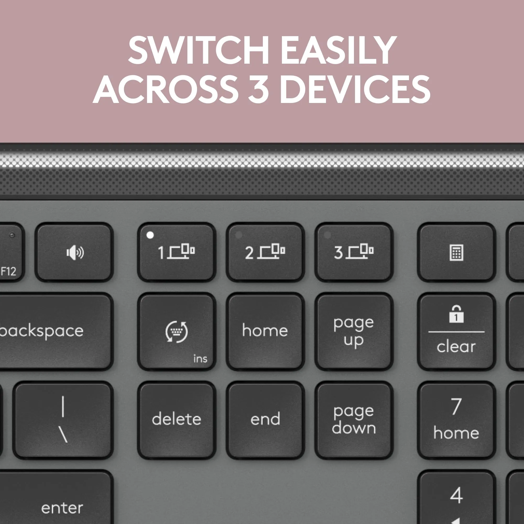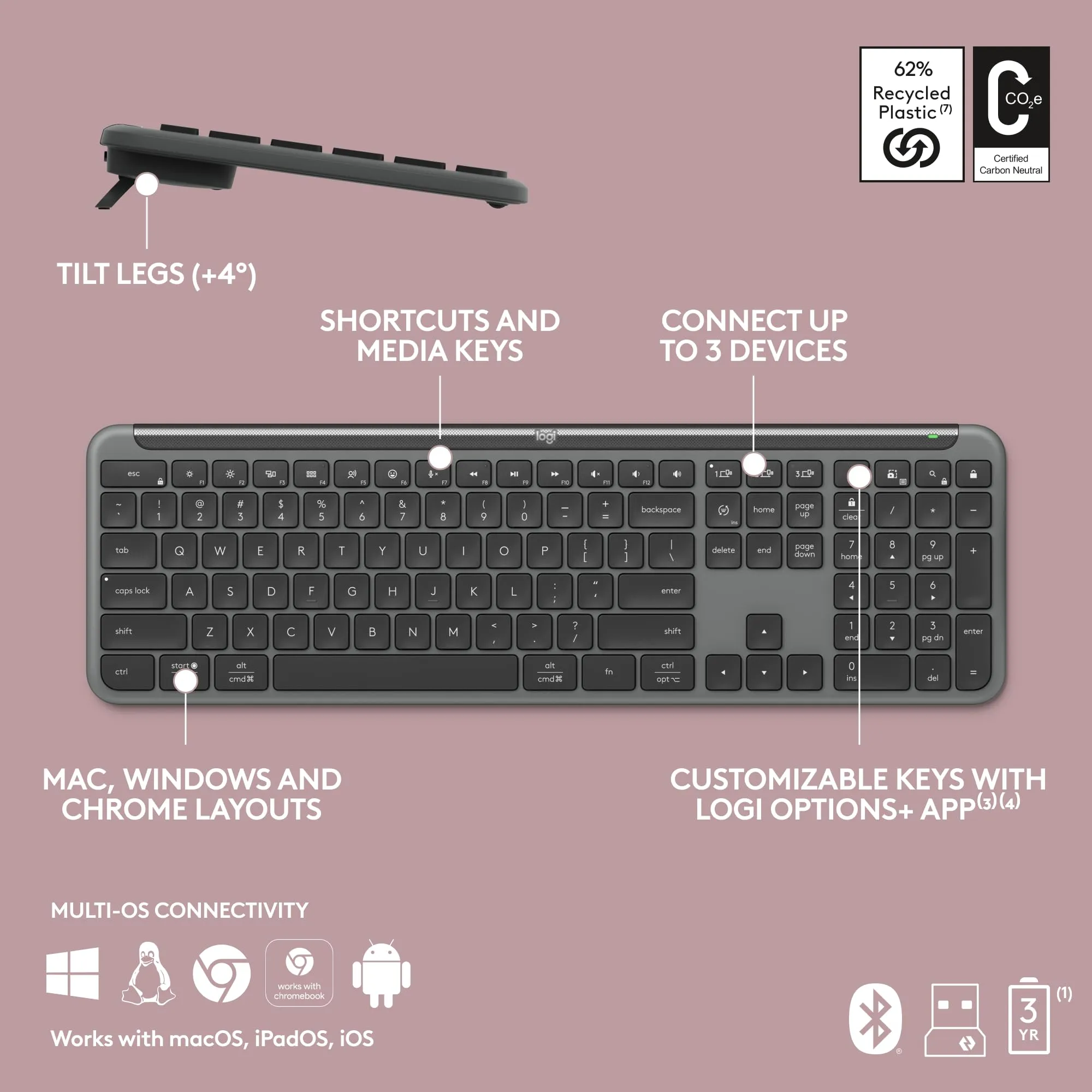 The Logitech K950 Wireless Signature Slim Keyboard in Graphite color offers a sleek and modern design, perfect for any workspace. Designed for comfort and efficiency, this keyboard provides a quiet typing experience that enhances productivity.
