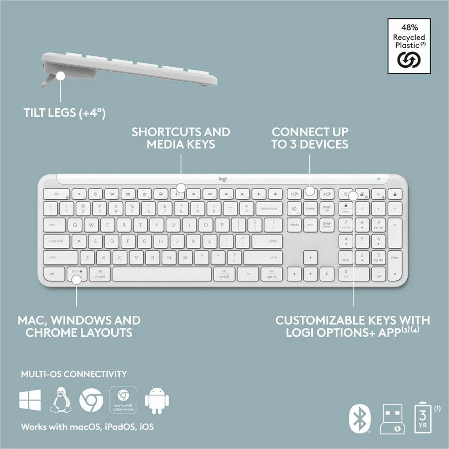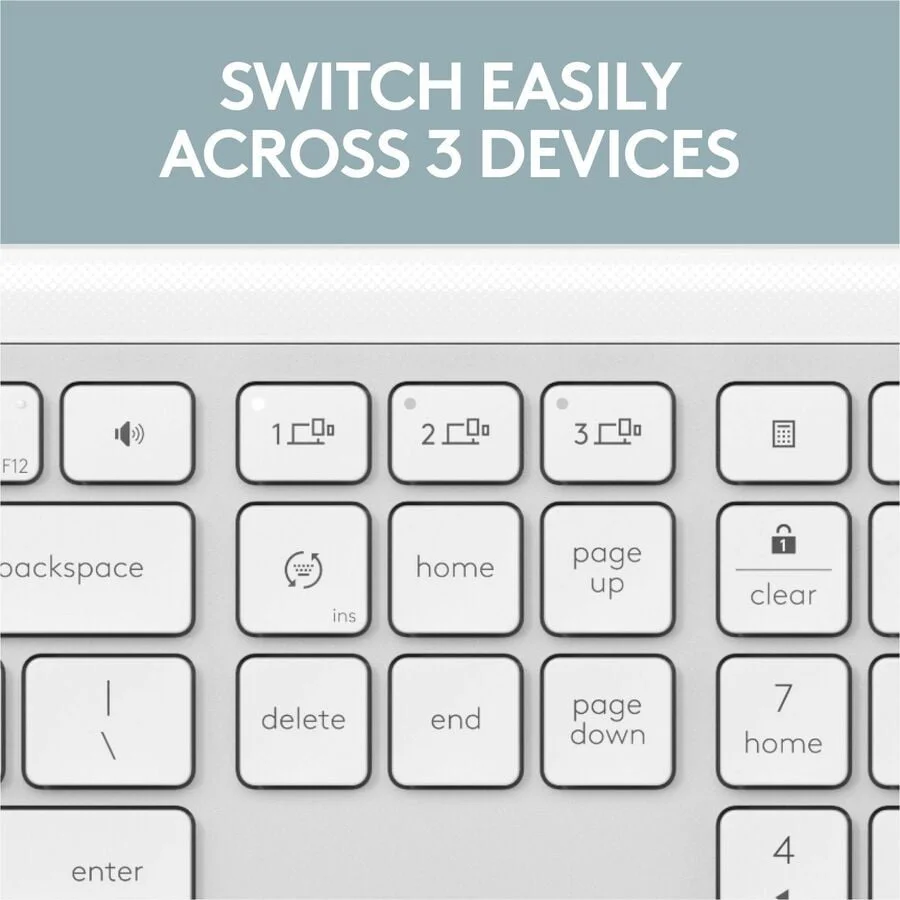 The Wireless Slim Keyboard K950 offers a sleek design and a modern aesthetic. Perfectly suited for any workspace, this off-white keyboard enhances productivity with its comfortable typing experience.