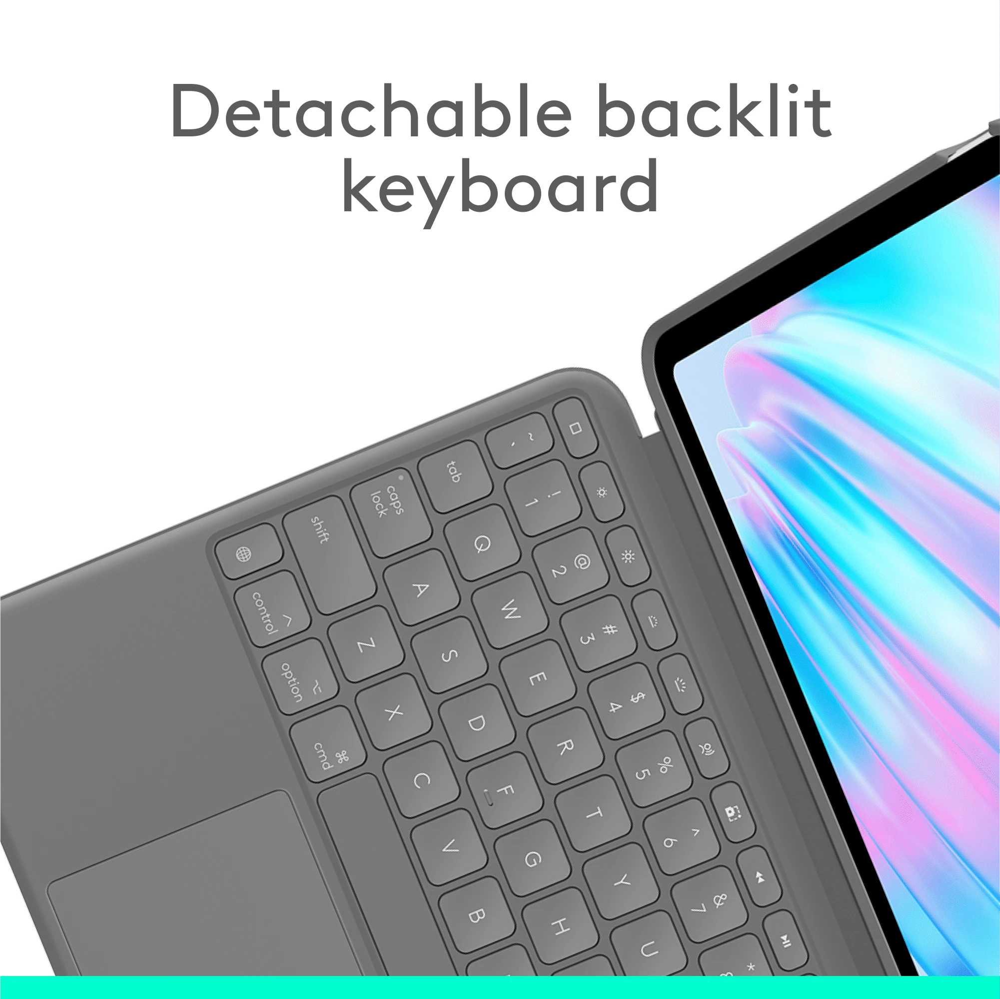 • Detachable keyboard with backlit keys for easy typing in low light.