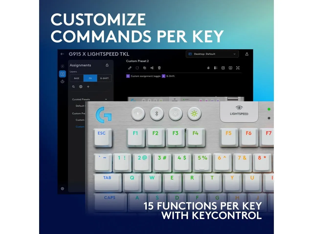 The Logitech G915 TKL combines premium materials with advanced technology to deliver an outstanding gaming experience. This tenkeyless keyboard features customizable RGB lighting, an ultra-slim design, and tactile switches for immersive gameplay.