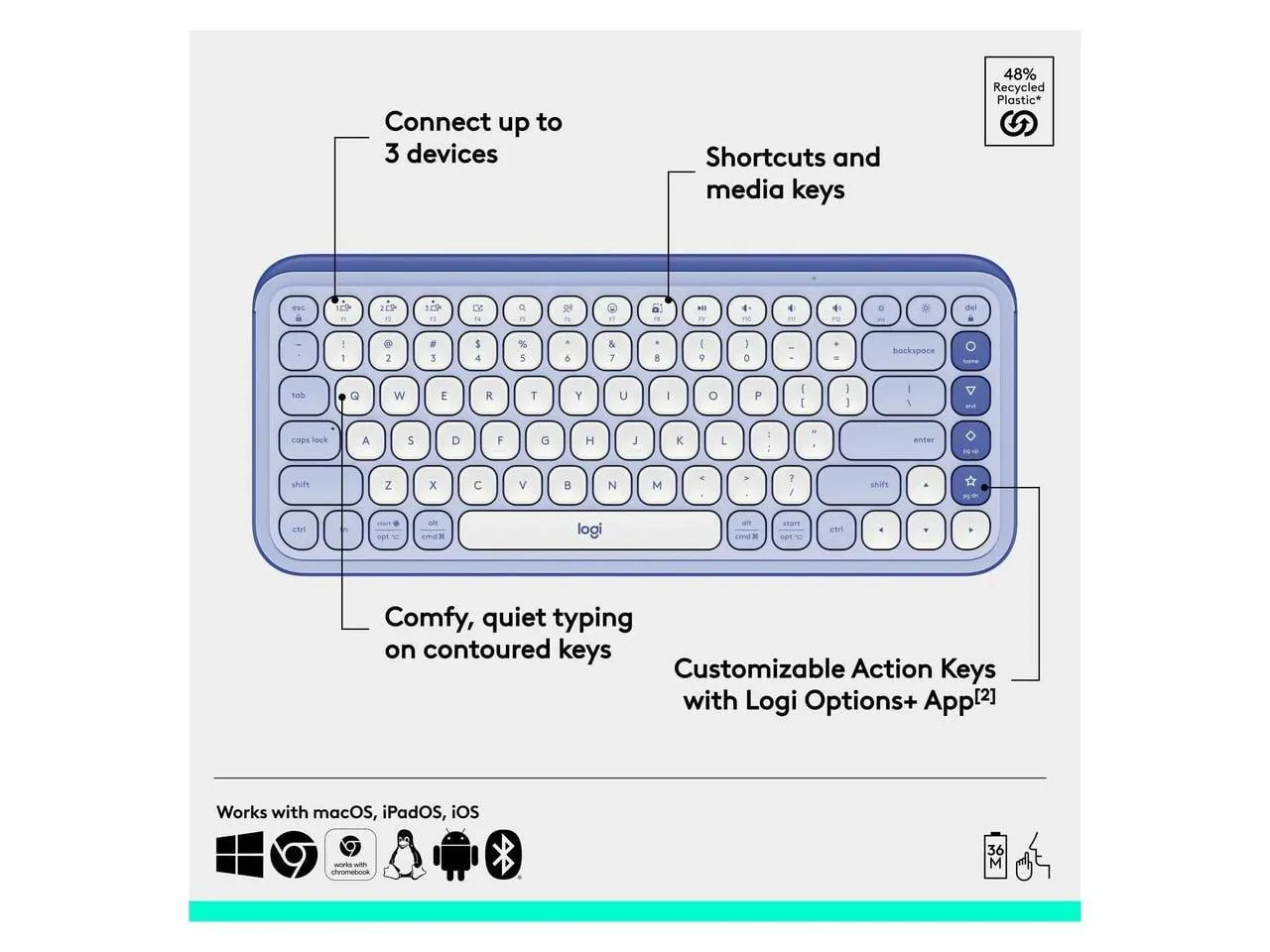 Experience a new level of creativity with the Lilac Off-White Pop Icon Keys Keyboard. Designed to brighten up your workspace, this keyboard combines style and functionality, bringing a refreshing touch to your typing experience.