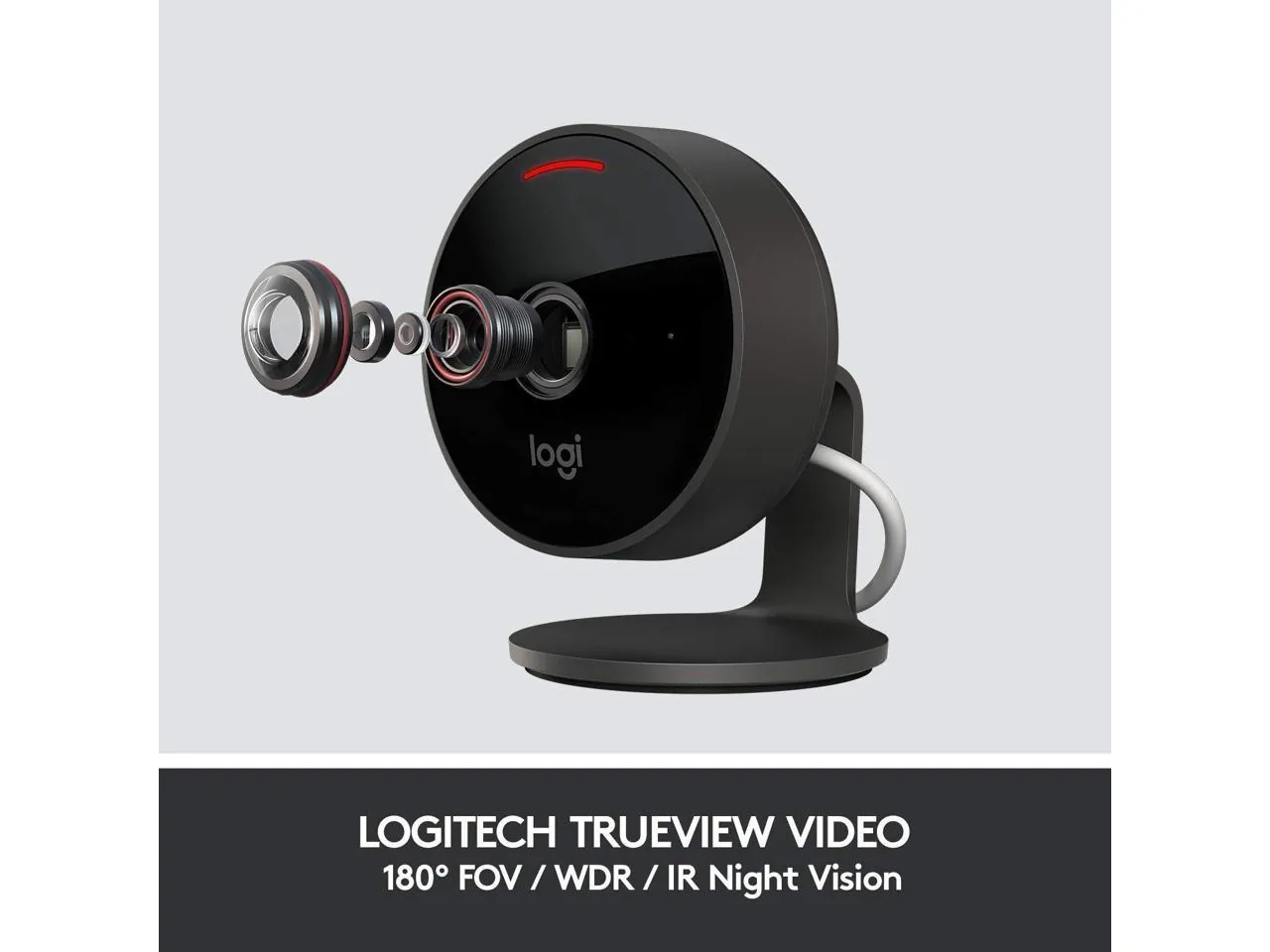 The Logitech Circle View is a weatherproof wired home security camera designed to keep your property safe. Equipped with a 180-degree wide-angle lens and 1080P HD video quality, it provides clear images both day and night. It features two-way audio, allowing you to communicate through the camera, and a tilt function that ensures privacy when needed. With Apple HomeKit Secure Video, your footage is encrypted for added security.