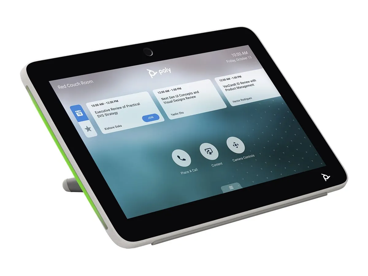 The Poly TC10 is an intuitive touch control unit designed for video conferencing. It simplifies the user experience by providing easy access to video calls, content sharing, and meeting management. The sleek and modern design enhances any meeting room environment.