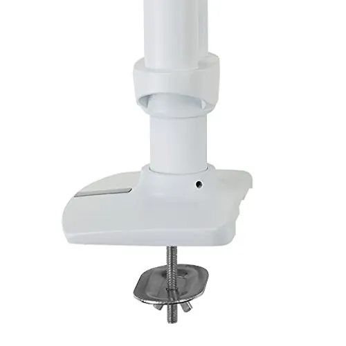 OUR LX ARM IN THE MIDDLE OF A WORKSURFACE, ROCK-SOLID BASE KEEPS MONITORS IN PLA