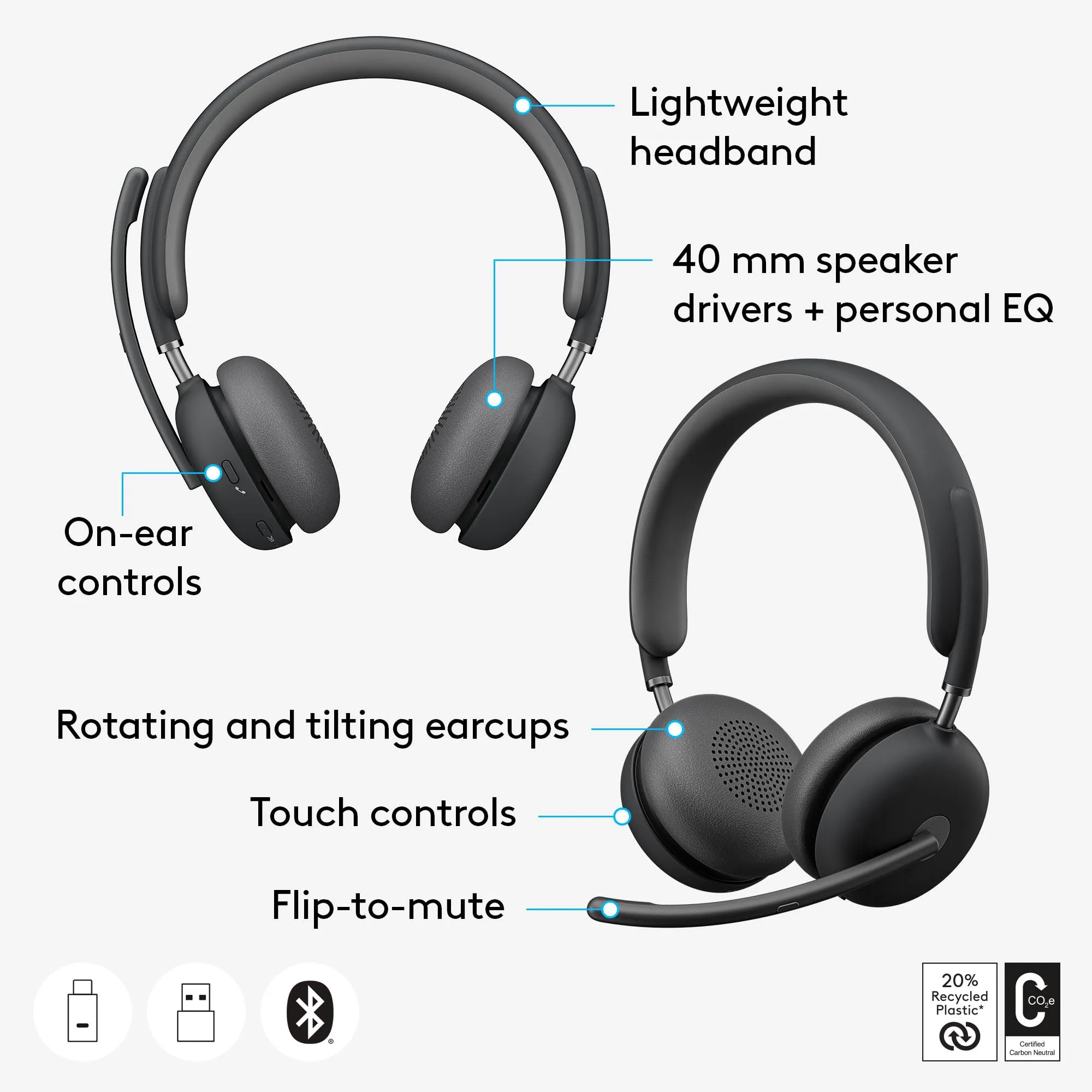 The sleek graphite design adds a modern touch, making it suitable for both office and home settings. Enjoy the freedom of wireless connectivity with long battery life and easy controls for music and calls.