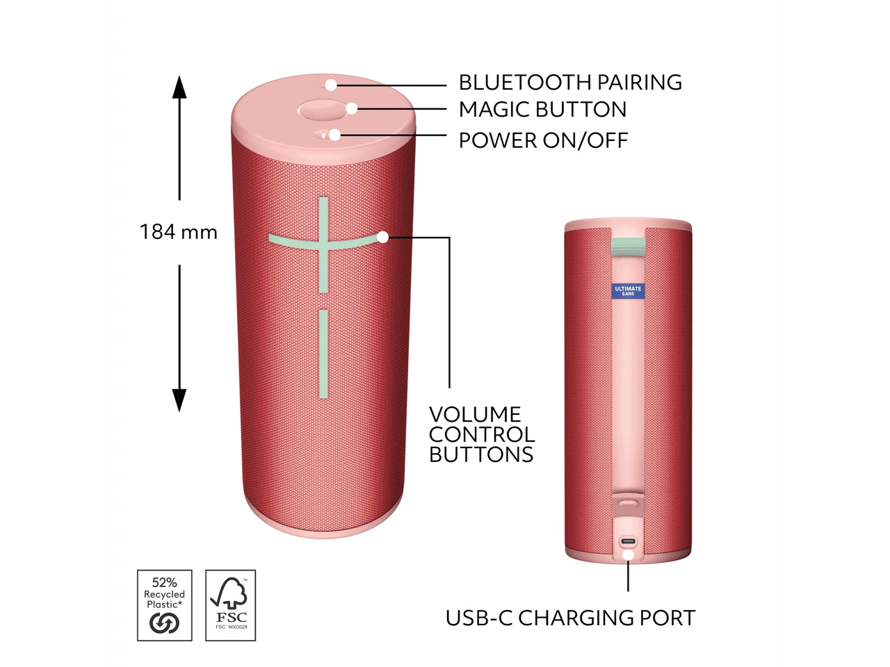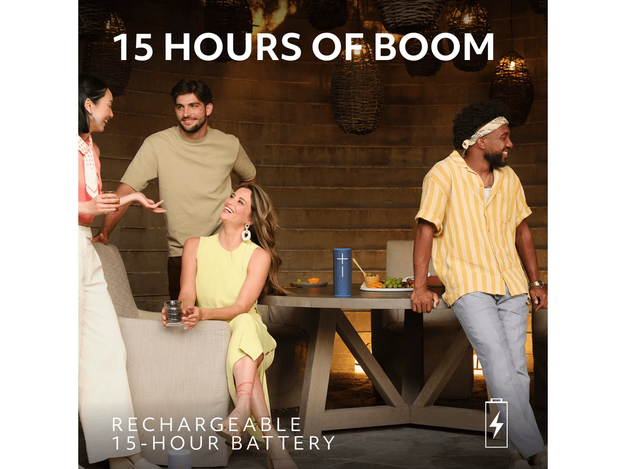 Experience a longer playtime with up to 15 hours of battery life, and connect it to other UE speakers for an even more powerful sound. Ideal for outdoor adventures, parties, or just relaxing at home.