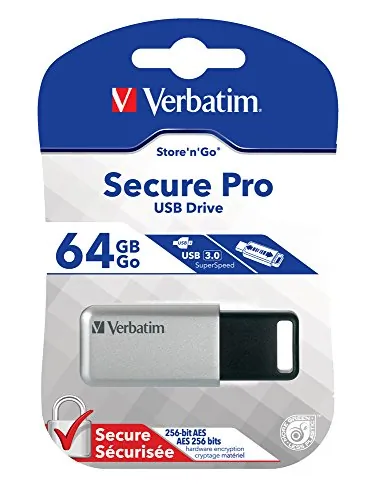 Take data security to the next level with the Store 'n' Go Secure Pro USB Drive. Once configured with your password, all data stored on a Secure Pro USB drive is encrypted with powerful, hardware-based, 256-bit AES encryption to prevent unauthorized access. The encrypted data is password-protected, and additional anti-tampering features help safeguard your data from brute force attacks or password-hacking attempts. Even if your device is stolen, the 64GB drive's features will keep your data safe and secure. With USB 3.0 connectivity for faster transfer speeds, the Store 'n' Go Secure Pro is ideal for securing business data, legal documents, personal health information and other forms of sensitive data on-the-go. For optimal performance, use with a USB 3.0 host system. Drive is also compatible with USB 2.0 ports. Retractable USB connector means no cap to lose.