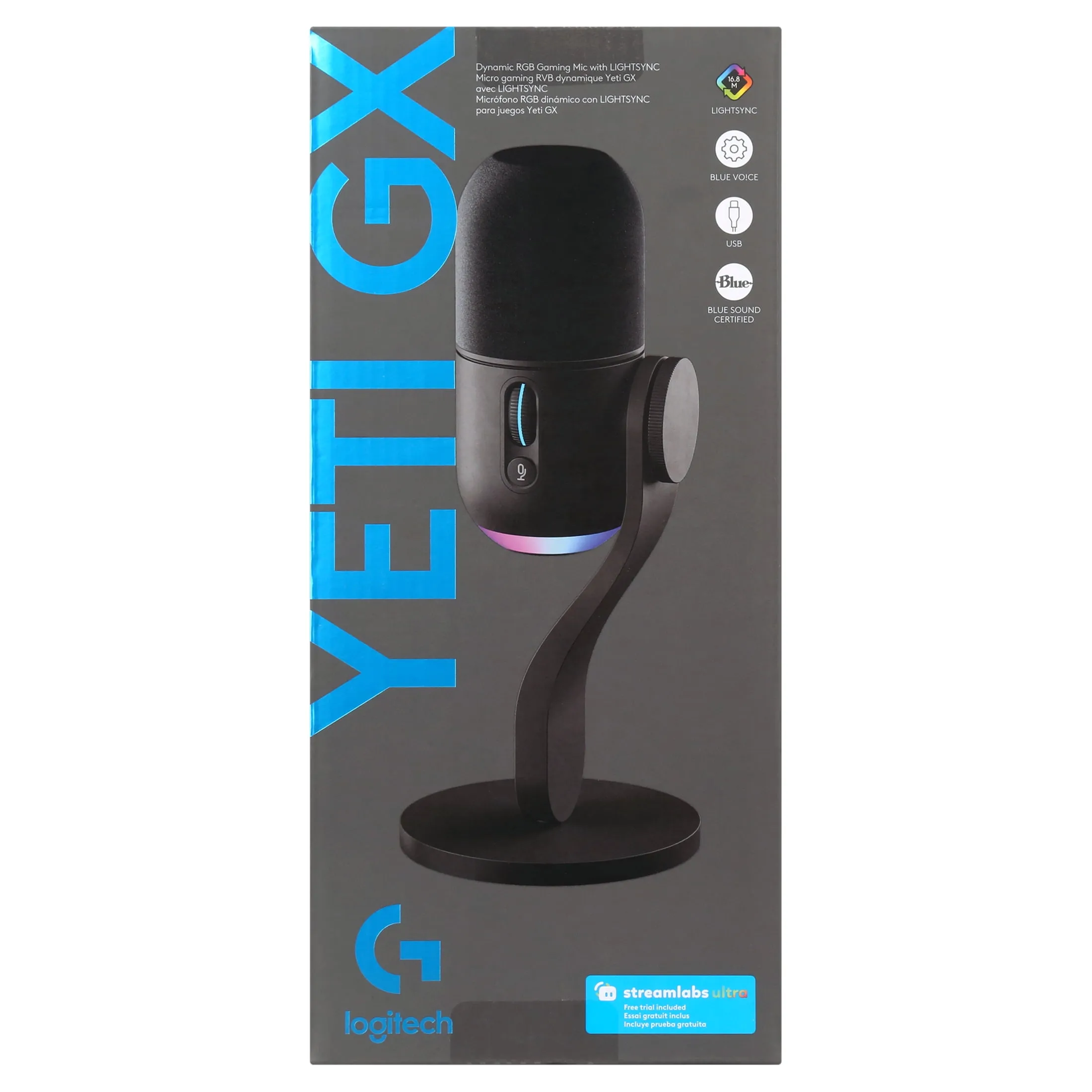 The Logitech YETI GX RGB Gaming Microphone is designed for gamers and content creators alike. Featuring advanced audio technology and customizable RGB lighting, this microphone ensures that your voice is heard clearly, whether you’re streaming, recording podcasts, or communicating with teammates during gameplay.