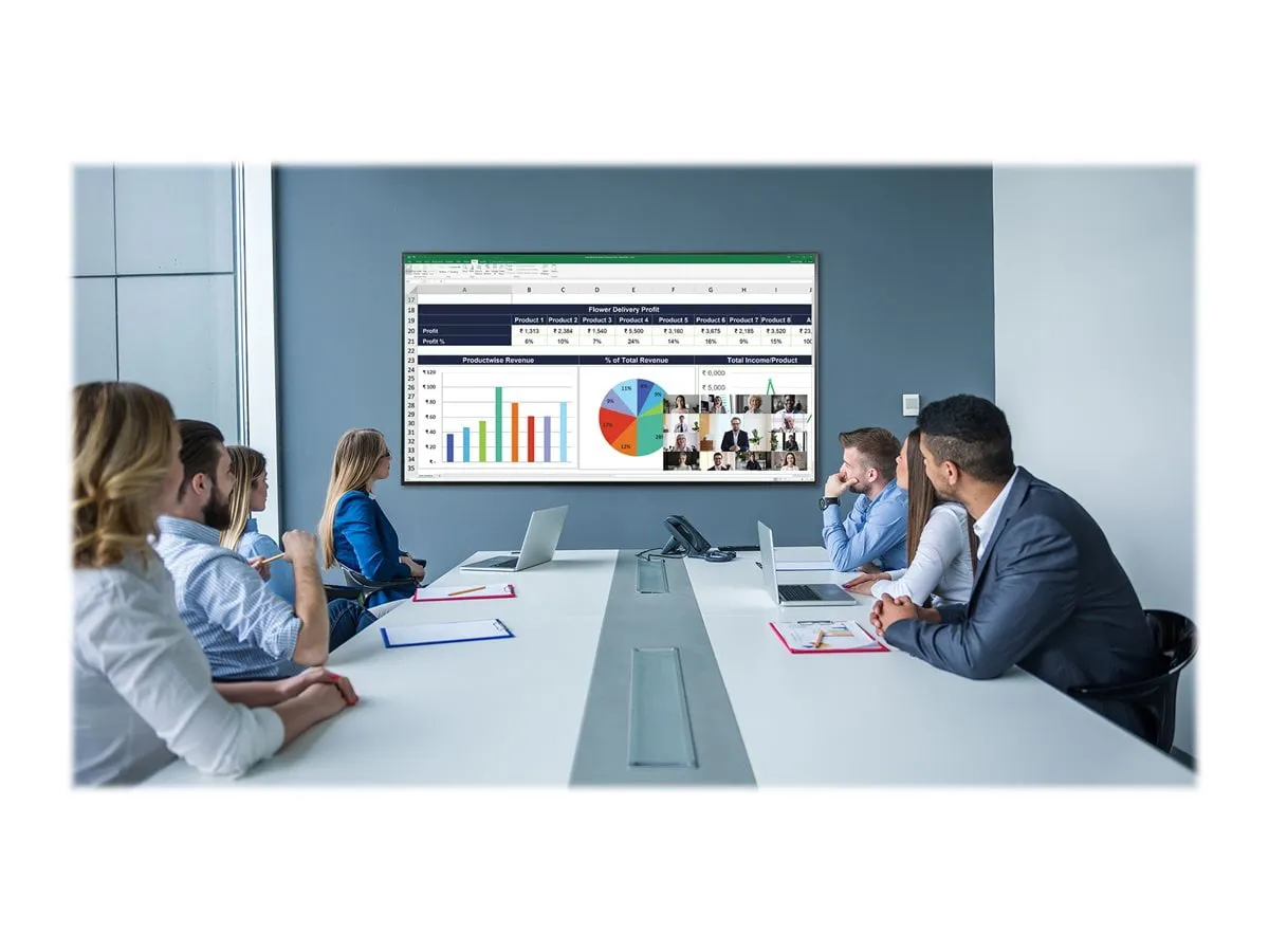 Experience stunning visuals with the URP49 49-inch UHD E-LED display, designed for 24/7 operation. This display boasts a brightness of 500 nits, making it ideal for various environments. Equipped with built-in speakers, it provides an all-in-one solution for your multimedia needs.