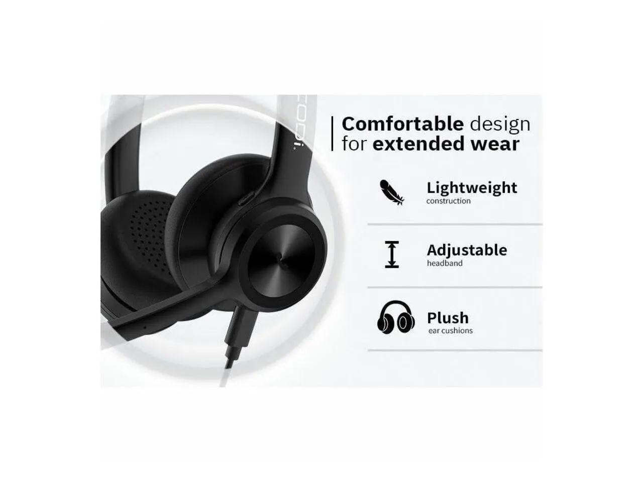 The ergonomic design provides comfort for long hours of use, making it ideal for meetings, gaming, or casual listening. Its durable construction and easy plug-and-play functionality make it a perfect choice for anyone seeking reliability and convenience.