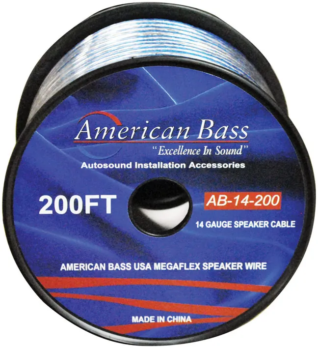 The American Bass 14 Gauge Megaflex Speaker Wire is designed for audiophiles looking for a high-quality connection for their speakers. With 200 feet of durable, flexible wire, this product ensures optimal sound quality and performance for your audio system.